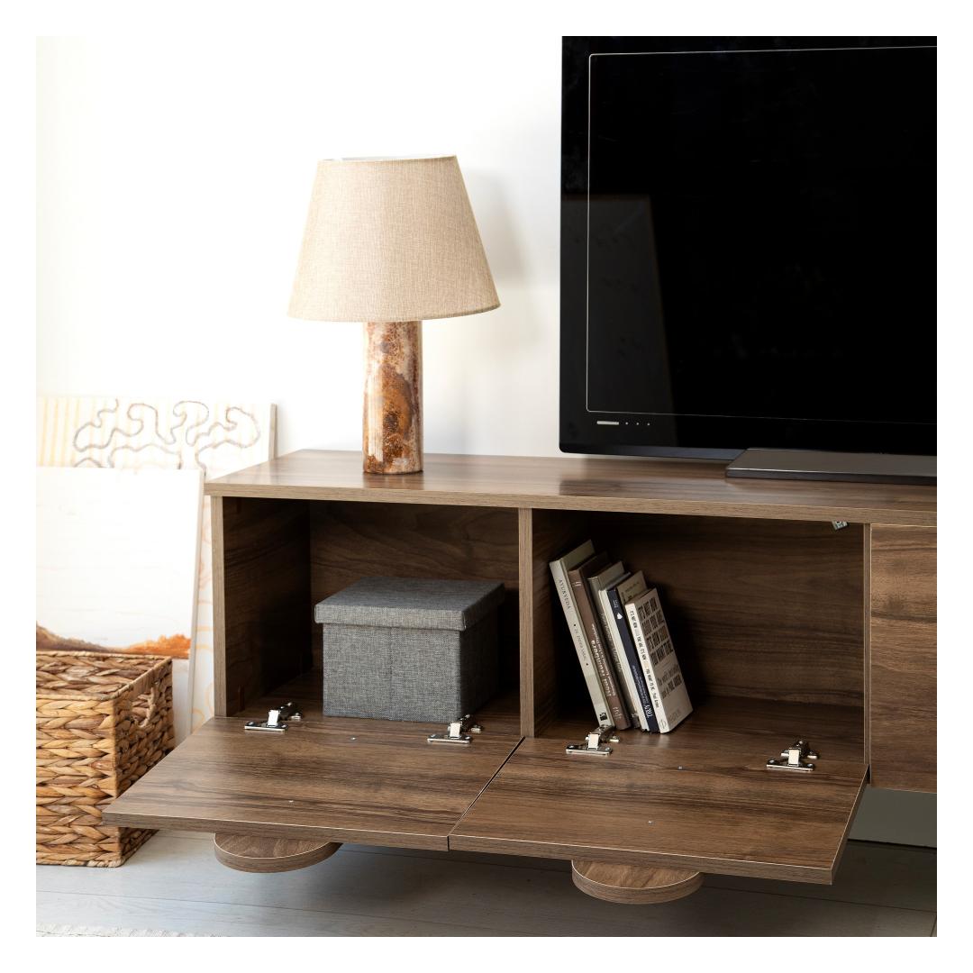 The TV Stand features a beautiful walnut color, adding a touch of sophistication to any room. The rich tones and natural wood grain create a warm and inviting atmosphere, making it the perfect addition to your home decor.