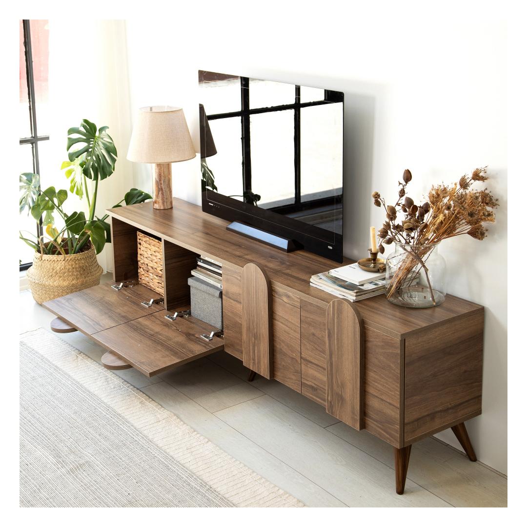 Transform your living room into a cozy and stylish haven with our stunning TV stand in Walnut color. This TV stand is not just a piece of furniture, it's a statement of elegance and sophistication.