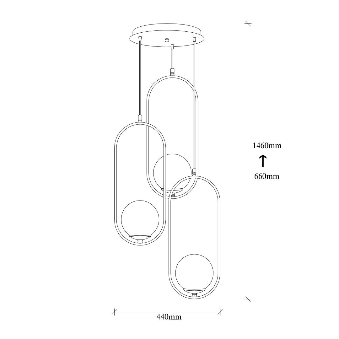 Featuring a glass cap that beautifully diffuses light, our chandelier creates a mesmerizing ambiance that will leave you spellbound. The diameter of 44 cm and a height of 146 cm make it the perfect centerpiece for your living room, dining area, or bedroom.