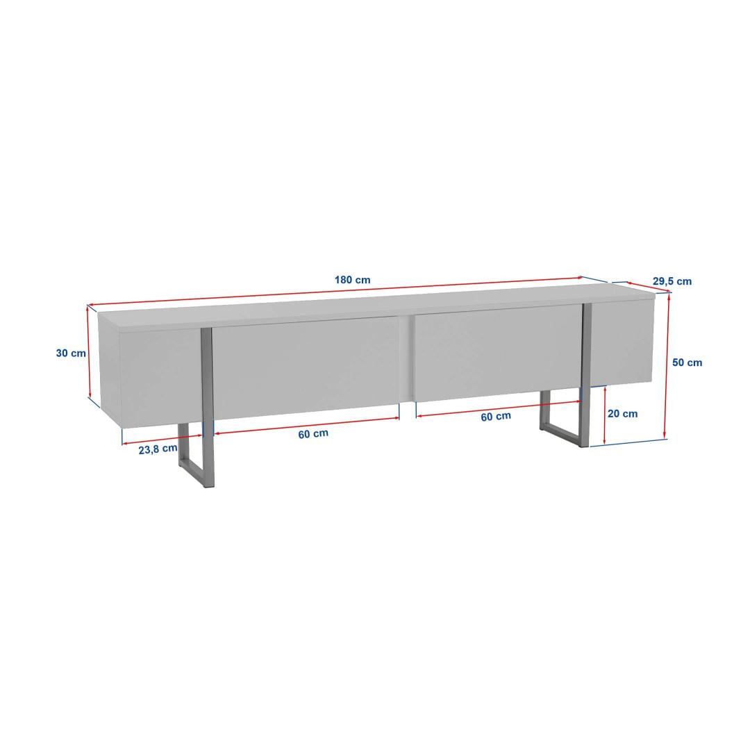 Not only does this TV stand look great, but it also provides ample storage space for all your entertainment essentials. The 18mm thickness of the 100% melamine coated particle board ensures durability and longevity, while the 180cm width, 50cm height, and 30cm depth offer plenty of room for your TV, media players, and more.