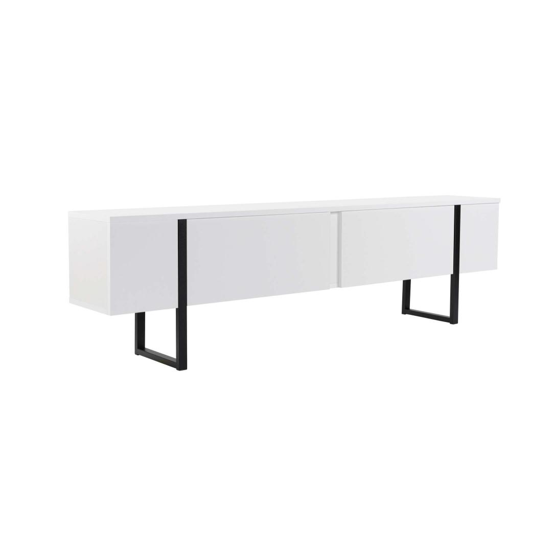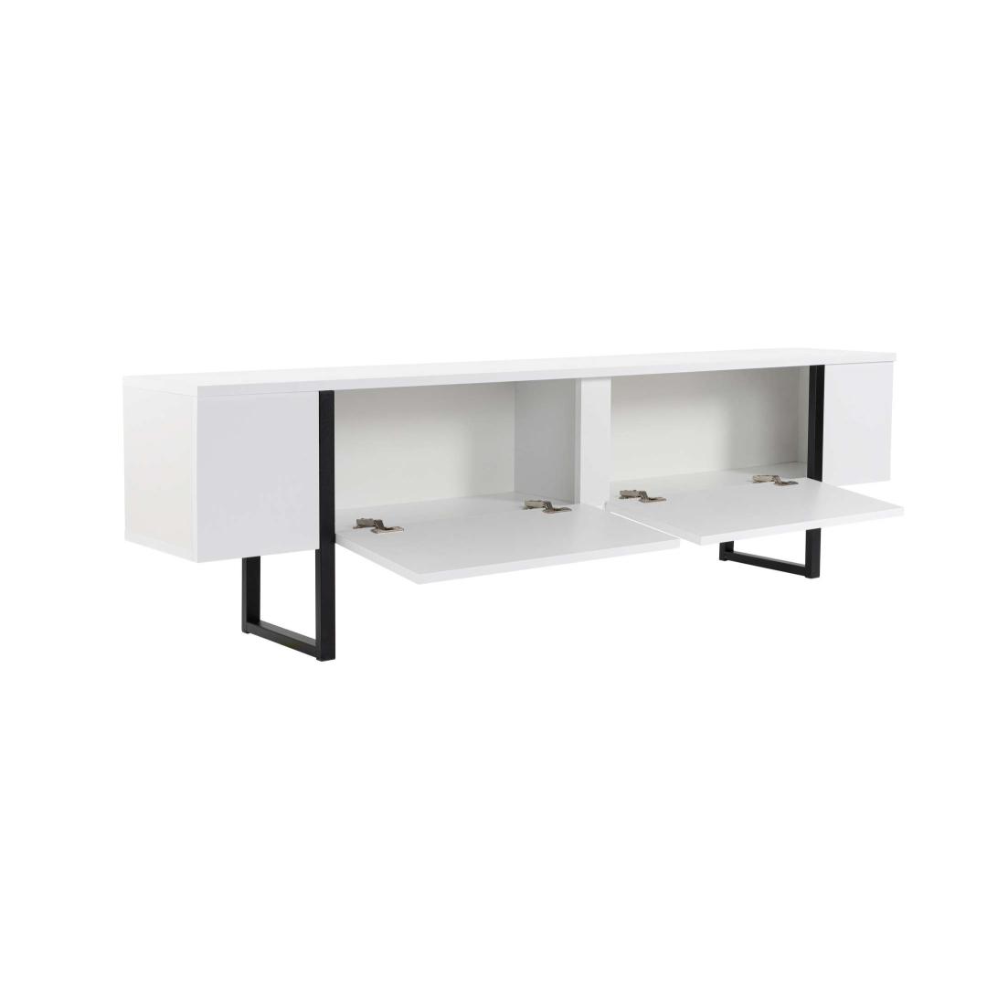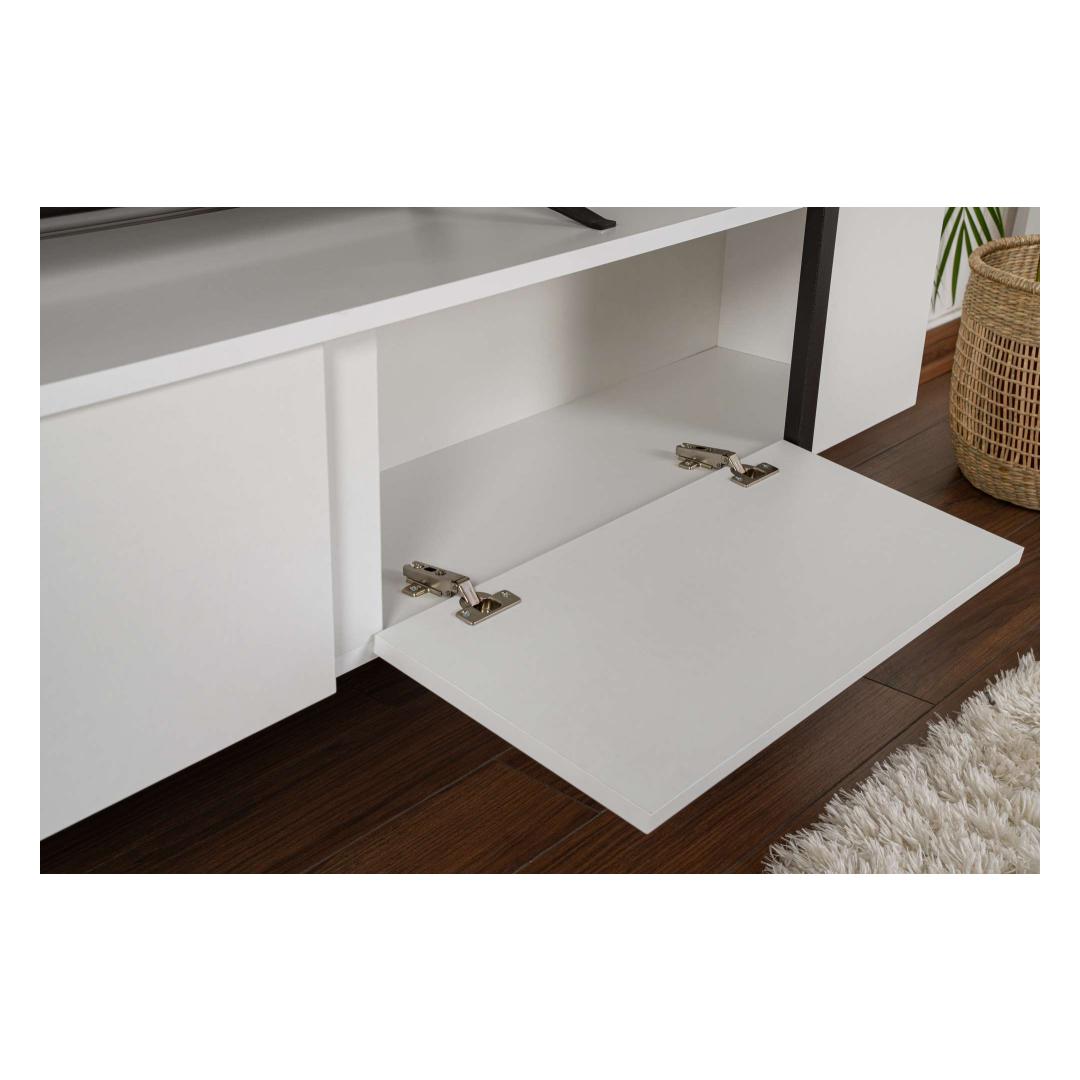 Imagine coming home after a long day and relaxing in front of your TV on this beautiful TV stand. The sleek design and modern color combination of white and black will instantly upgrade the look of your living space. It's the perfect blend of functionality and style, making it a must-have for any home.
