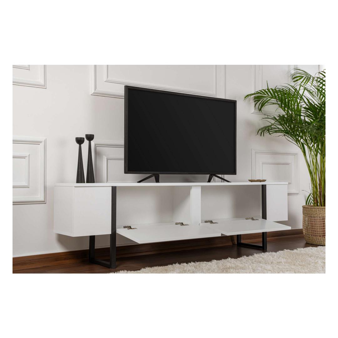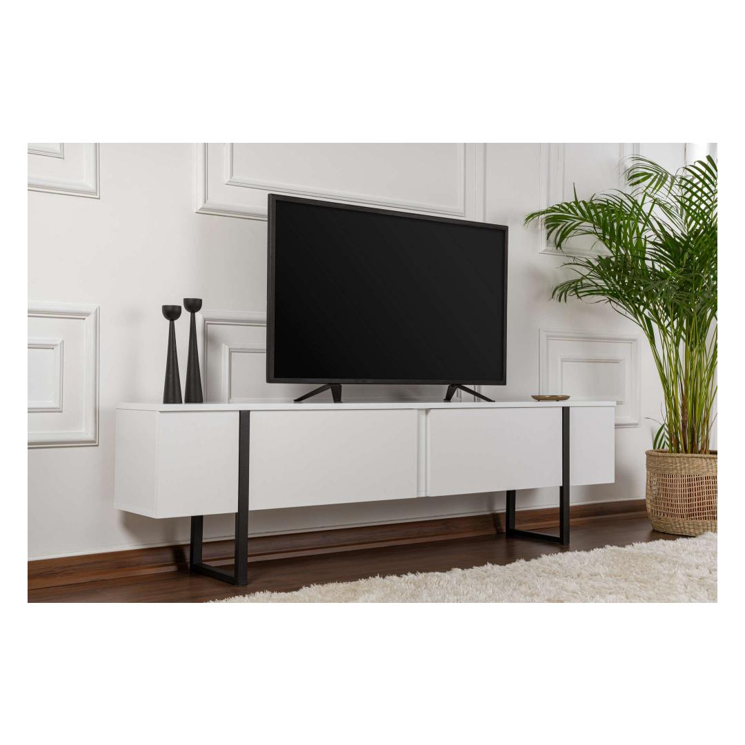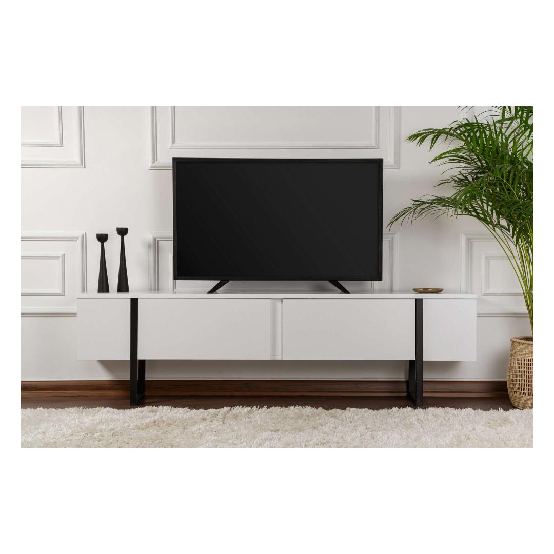 Imagine coming home after a long day and relaxing in front of your TV on this beautiful TV stand. The sleek design and modern color combination of white and black will instantly upgrade the look of your living space. It's the perfect blend of functionality and style, making it a must-have for any home.