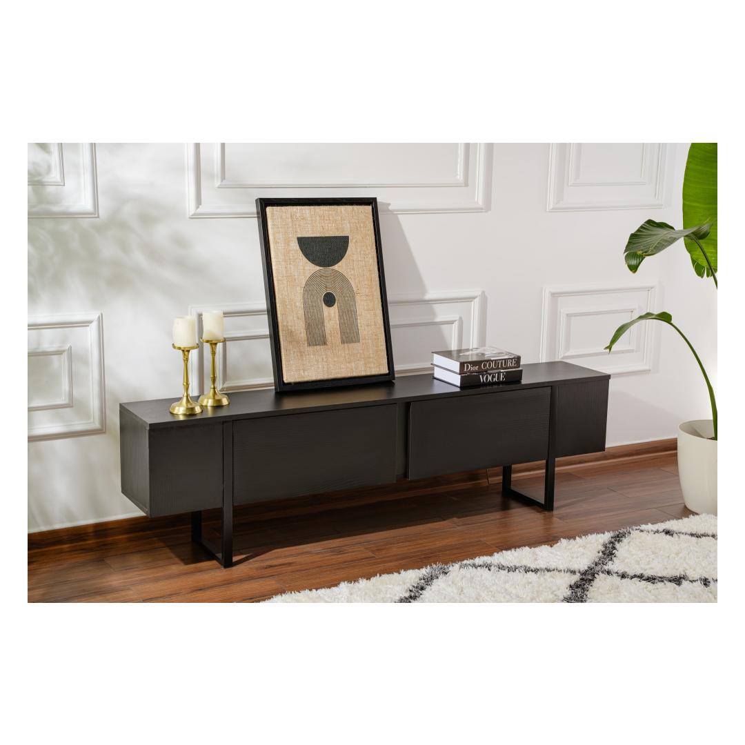 Transform your living room with our sleek and modern TV stand. This TV stand is not just a piece of furniture, it's a statement of style and sophistication. The combination of Wood Black and Black colors gives it a unique and contemporary look that will elevate the aesthetic of any room.