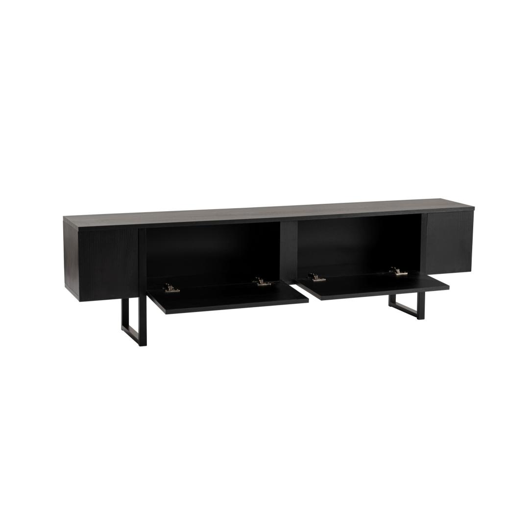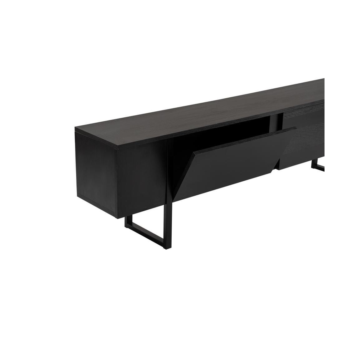 The solid black color and modern design of this TV stand make it a standout piece in any room. Its sleek lines and clean finish add a touch of sophistication to your living space, while the 180 cm width provides plenty of room for your TV and other electronics.
