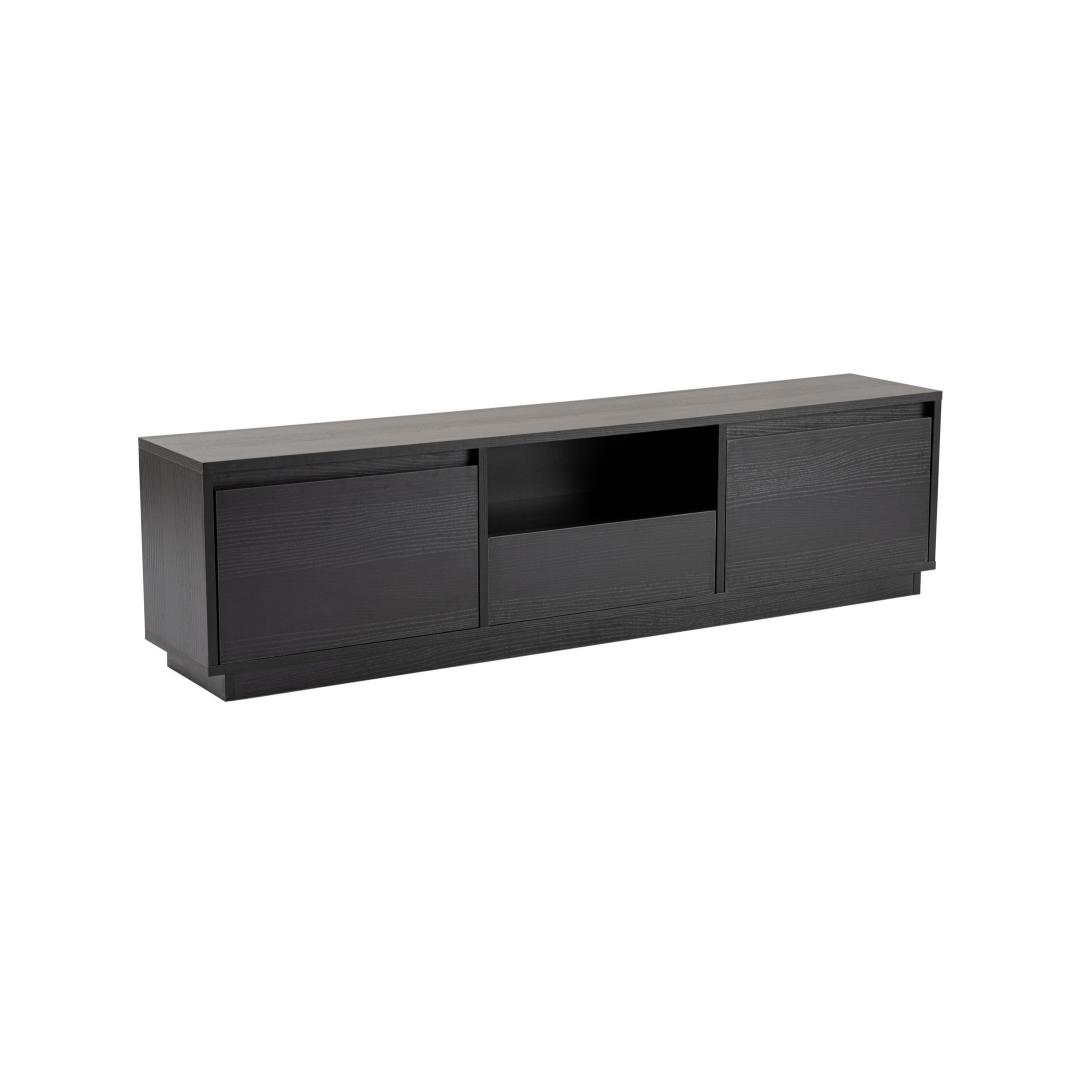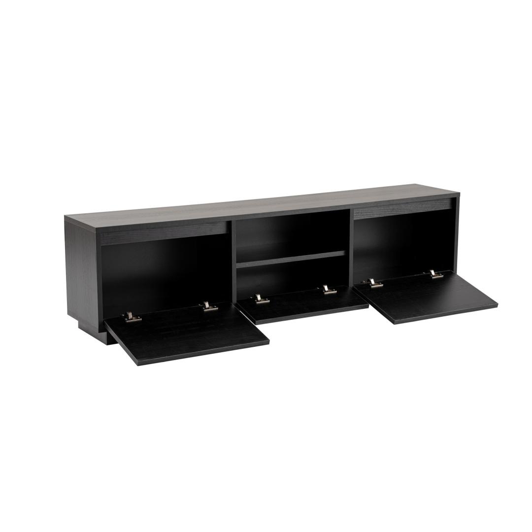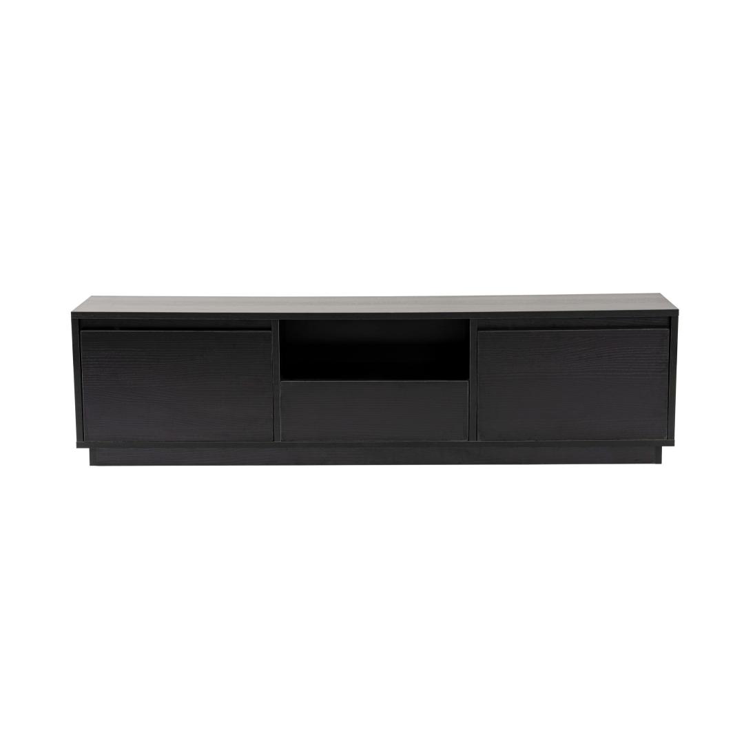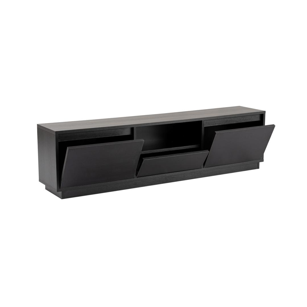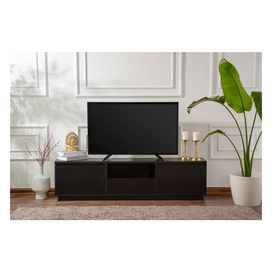 Elevate your living room with our stunning TV stand in Wood Black color. This sleek and modern piece will instantly upgrade the look of your entertainment area, adding a touch of sophistication and style.