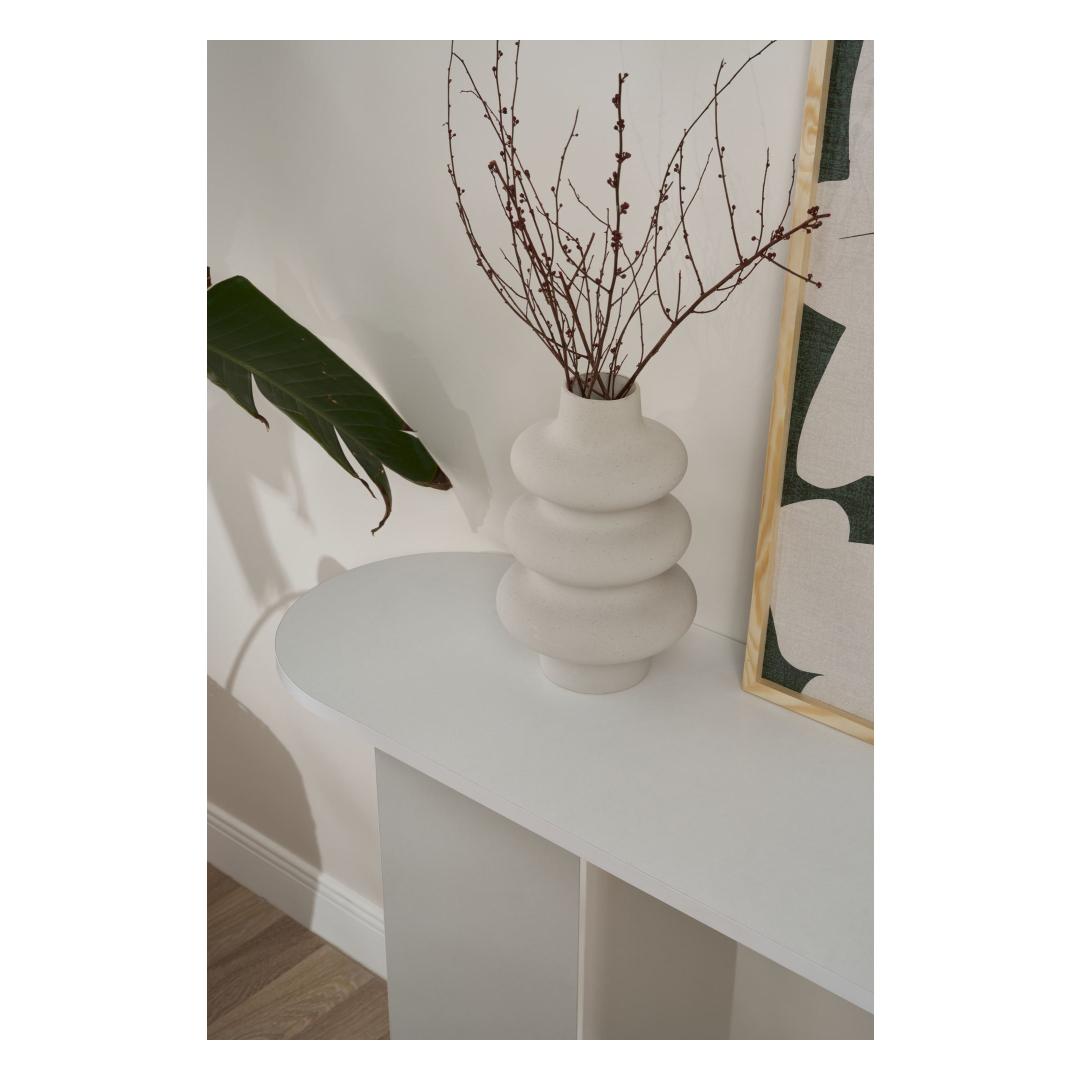 The clean white color of this sideboard adds a touch of brightness and freshness to your space, creating a welcoming and inviting atmosphere. Whether you use it to display your favorite decor pieces or store your belongings, this sideboard is sure to make a statement.