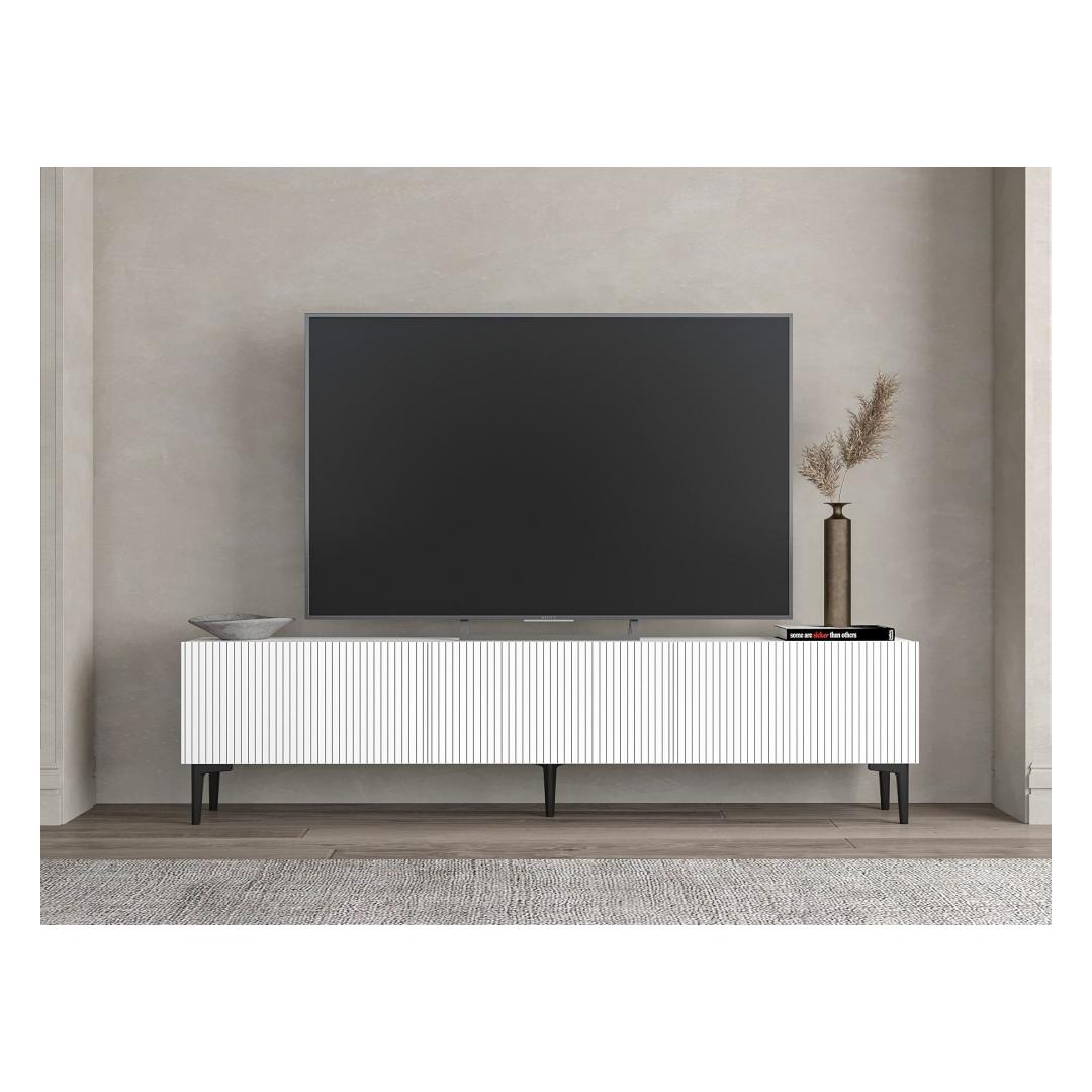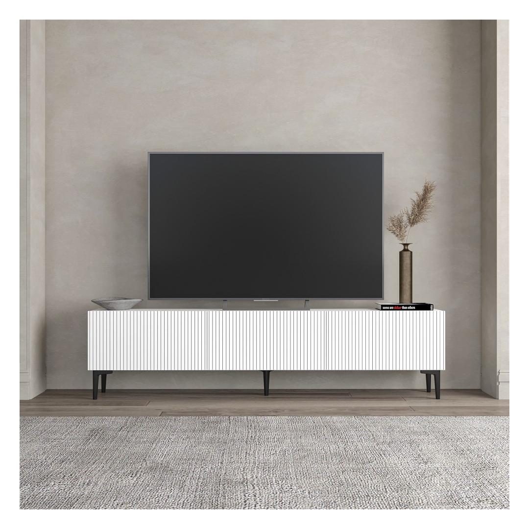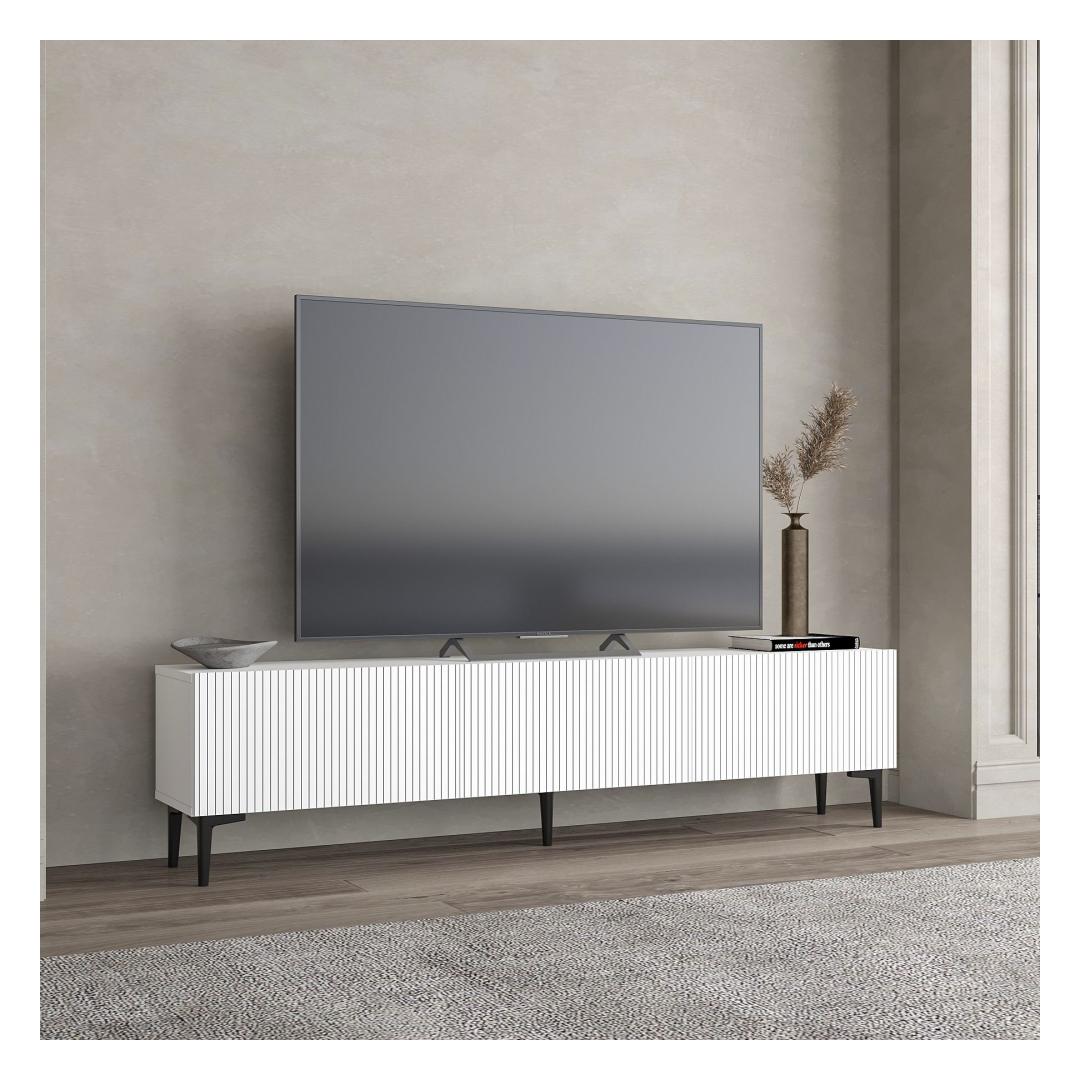 Measuring 180 cm in width, 45 cm in height, and 31.4 cm in depth, this TV stand offers ample storage space for all your media essentials. The option to fix it to the wall adds a touch of versatility, allowing you to customize the layout of your room to suit your needs.