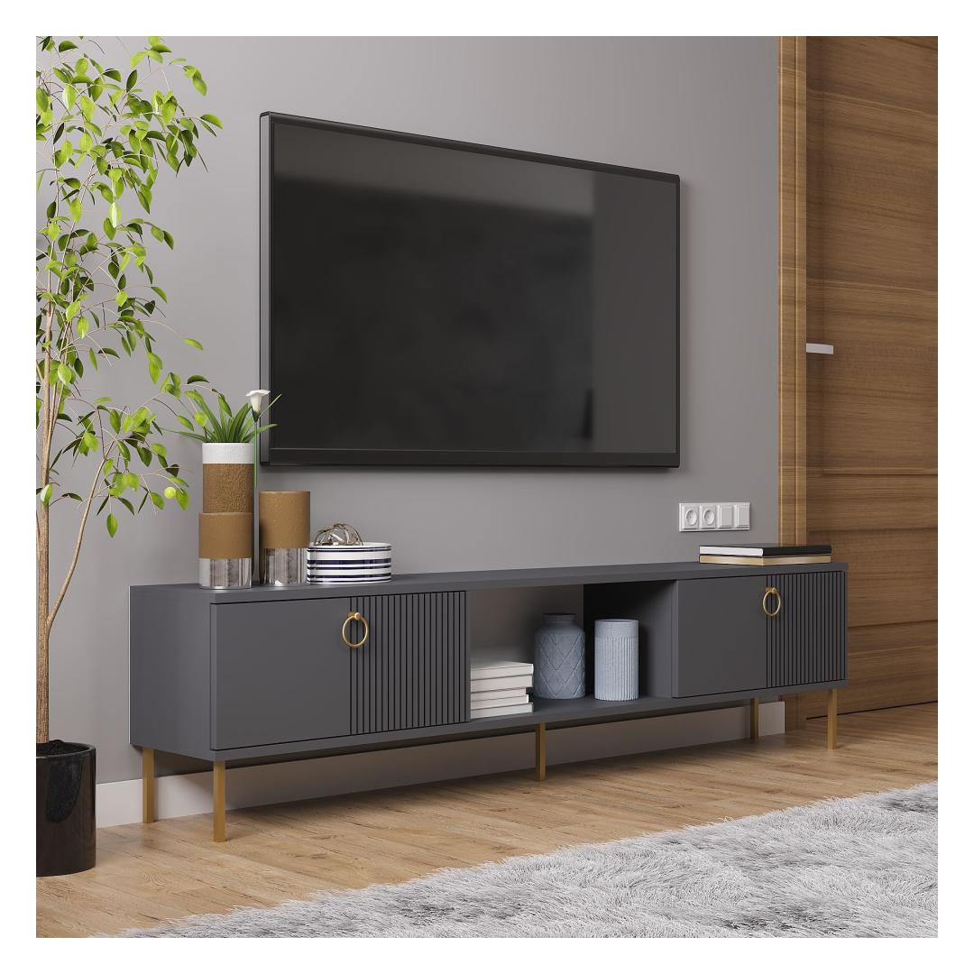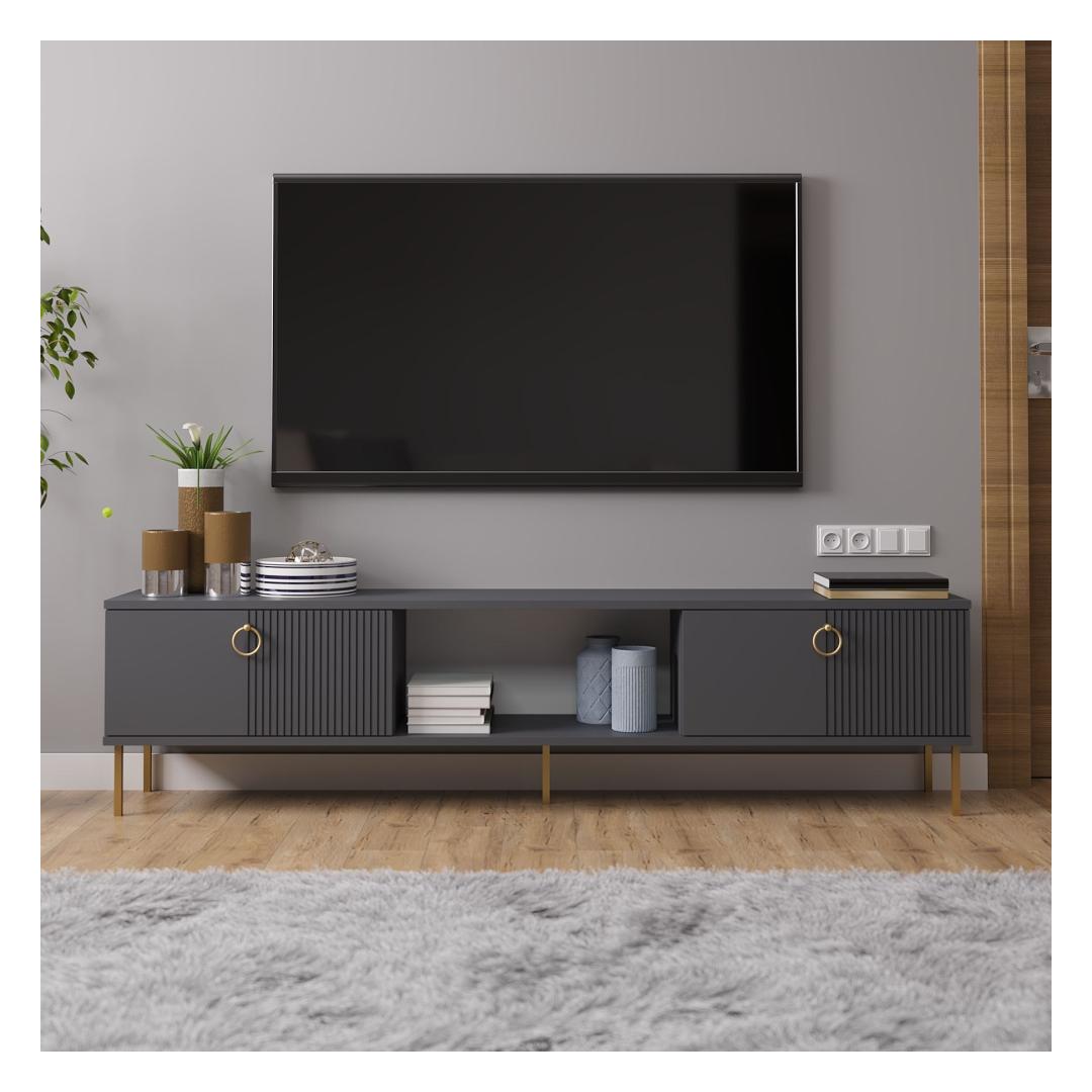 Say goodbye to clutter and hello to sophistication with our TV stand. Its modern design and anthracite color will instantly upgrade the look of your entertainment area, creating a focal point that is both functional and fashionable.