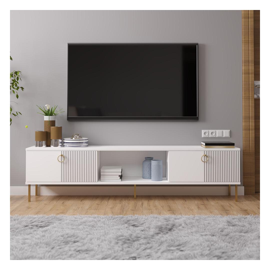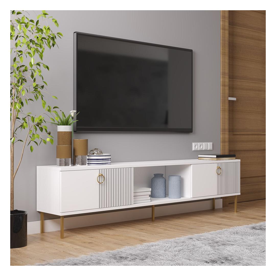 Transform your living room into a sleek and modern space with our stunning TV stand. Made from 100% melamine coated particle board, this stand is not only durable but also incredibly stylish. The clean white color adds a touch of elegance to any room, while the 18mm thickness ensures stability and longevity.