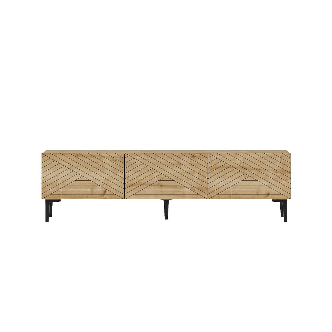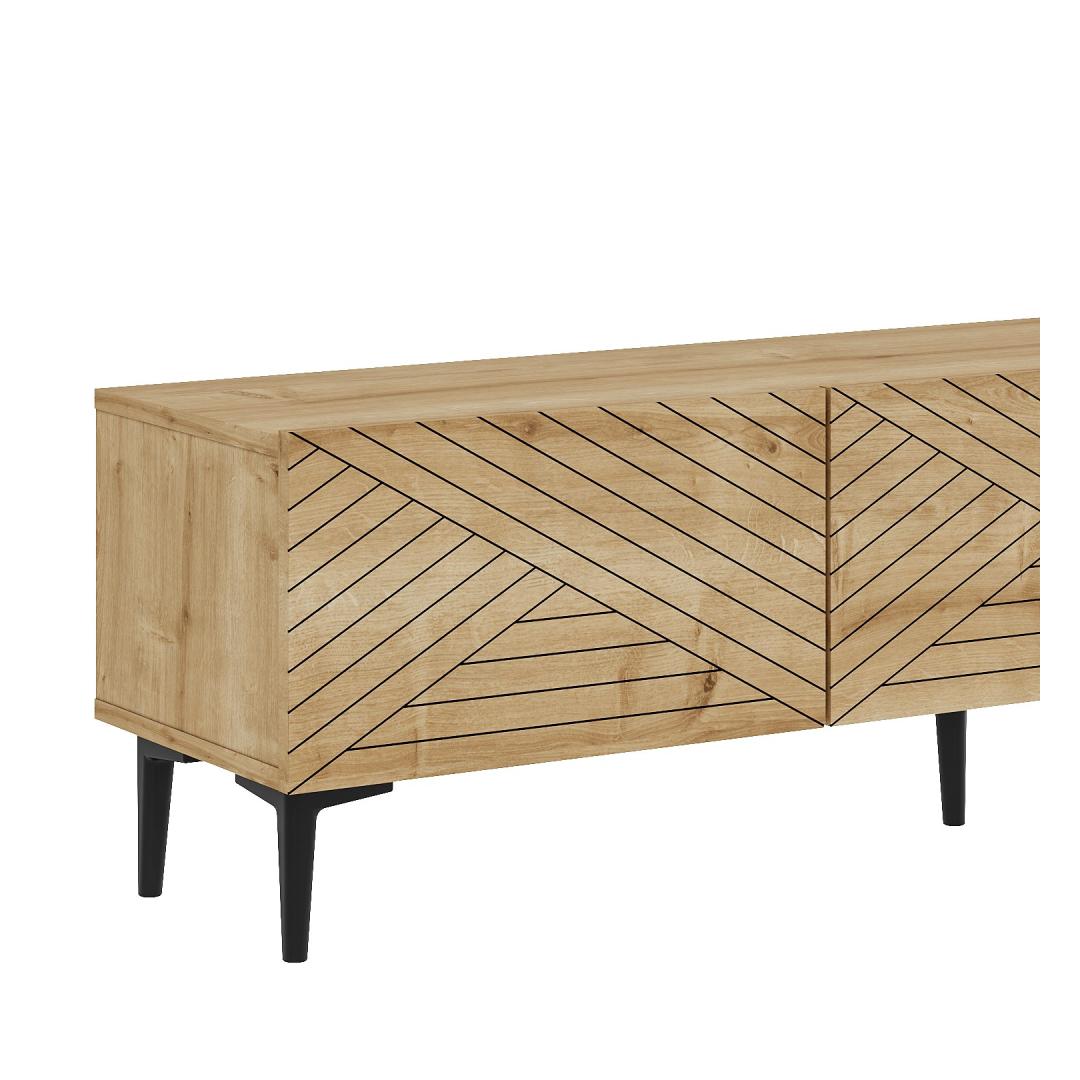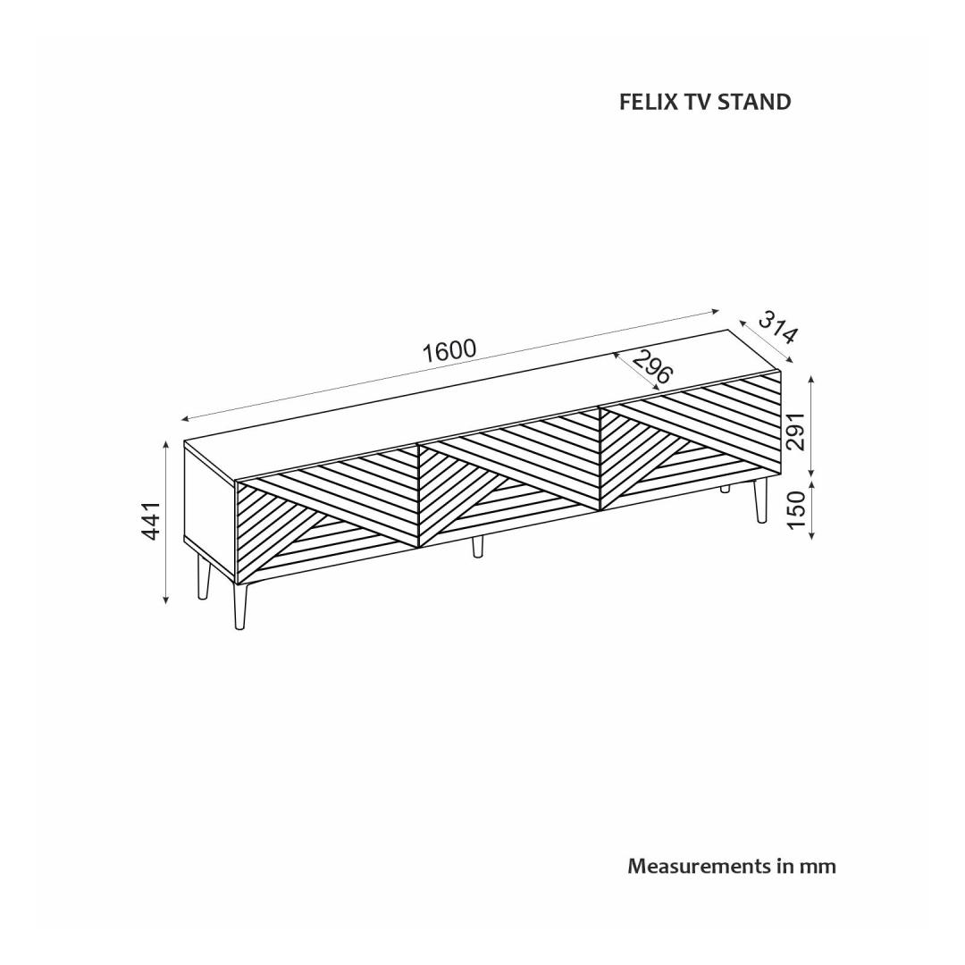 Crafted from 100% melamine coated particle board, this TV stand is not only durable and long-lasting but also easy to clean and maintain. The 18mm thickness ensures stability and sturdiness, while the 160cm width provides plenty of space for your TV and other entertainment devices. The 15cm leg height adds a touch of elegance and sophistication to the overall design.