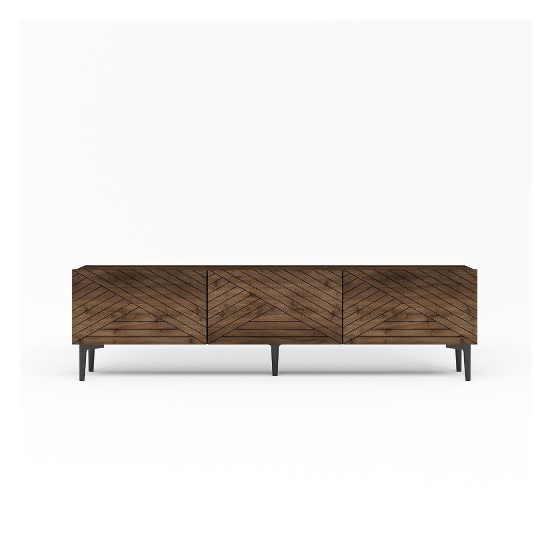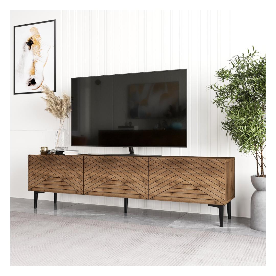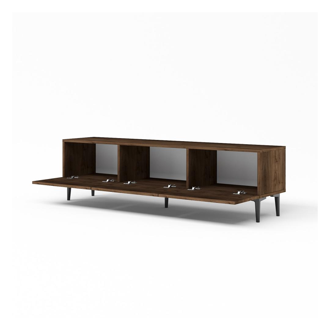 Crafted from 100% melamine coated particle board, this TV stand is built to last. The 18mm thickness ensures stability and durability, while the walnut color adds a touch of warmth and sophistication to your space. The 160cm width, 44.1cm height, and 31.4cm depth provide plenty of room for your TV, media players, and other essentials.