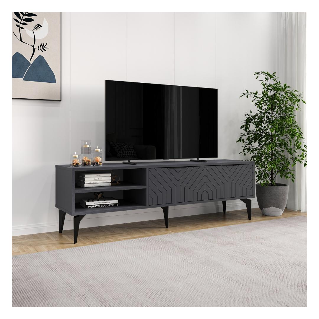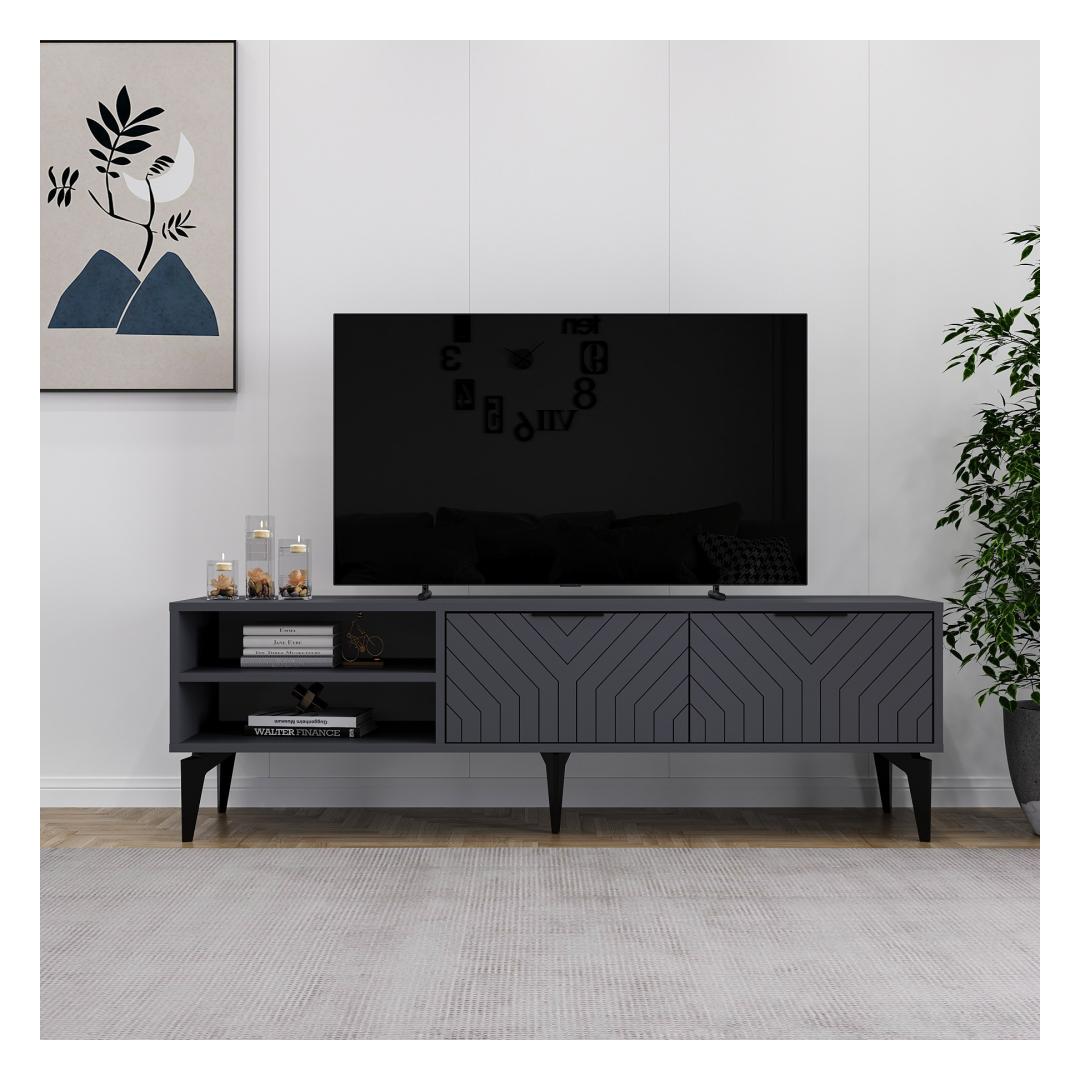 Elegant Design: The TV stand features a sleek Anthracite color that will effortlessly complement any decor style. Its clean lines and minimalist design add a touch of sophistication to your living room.
