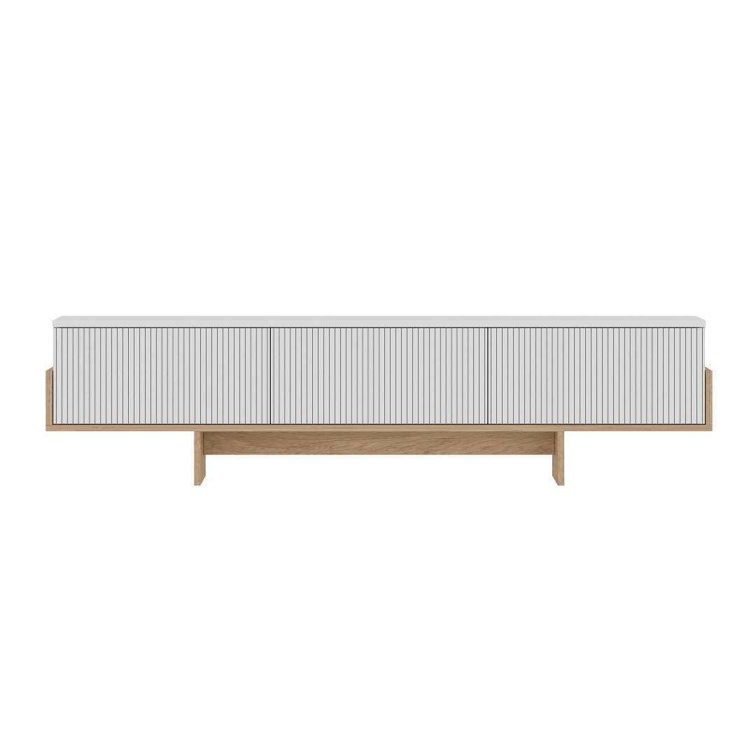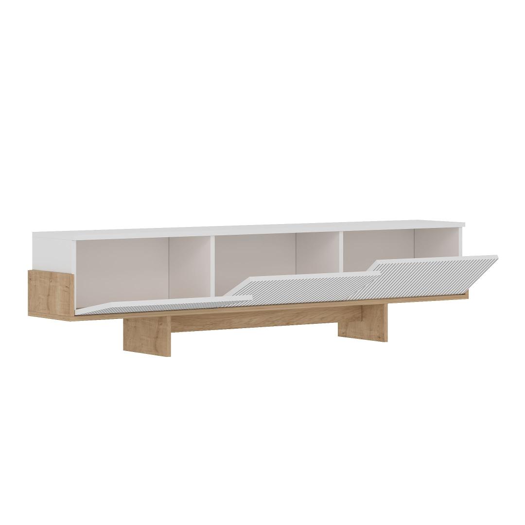 Crafted from 100% melamine coated particle board, this TV stand is built to last. The 18mm thickness ensures stability and durability, while the generous dimensions of 180cm in width, 44.6cm in height, and 30cm in depth provide ample storage space for all your media devices and accessories. With its sleek design and high-quality construction, this TV stand is a must-have for any modern home.