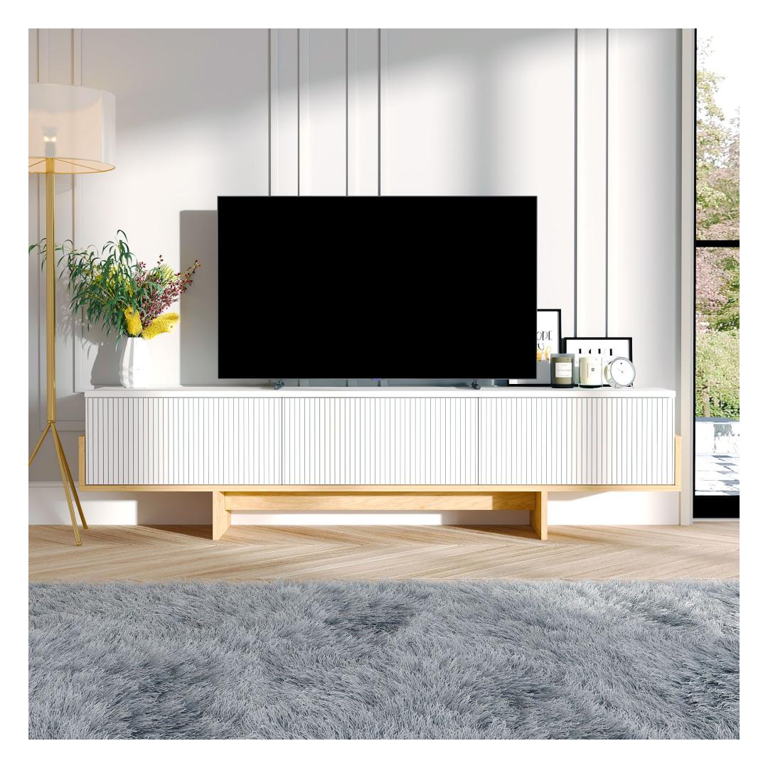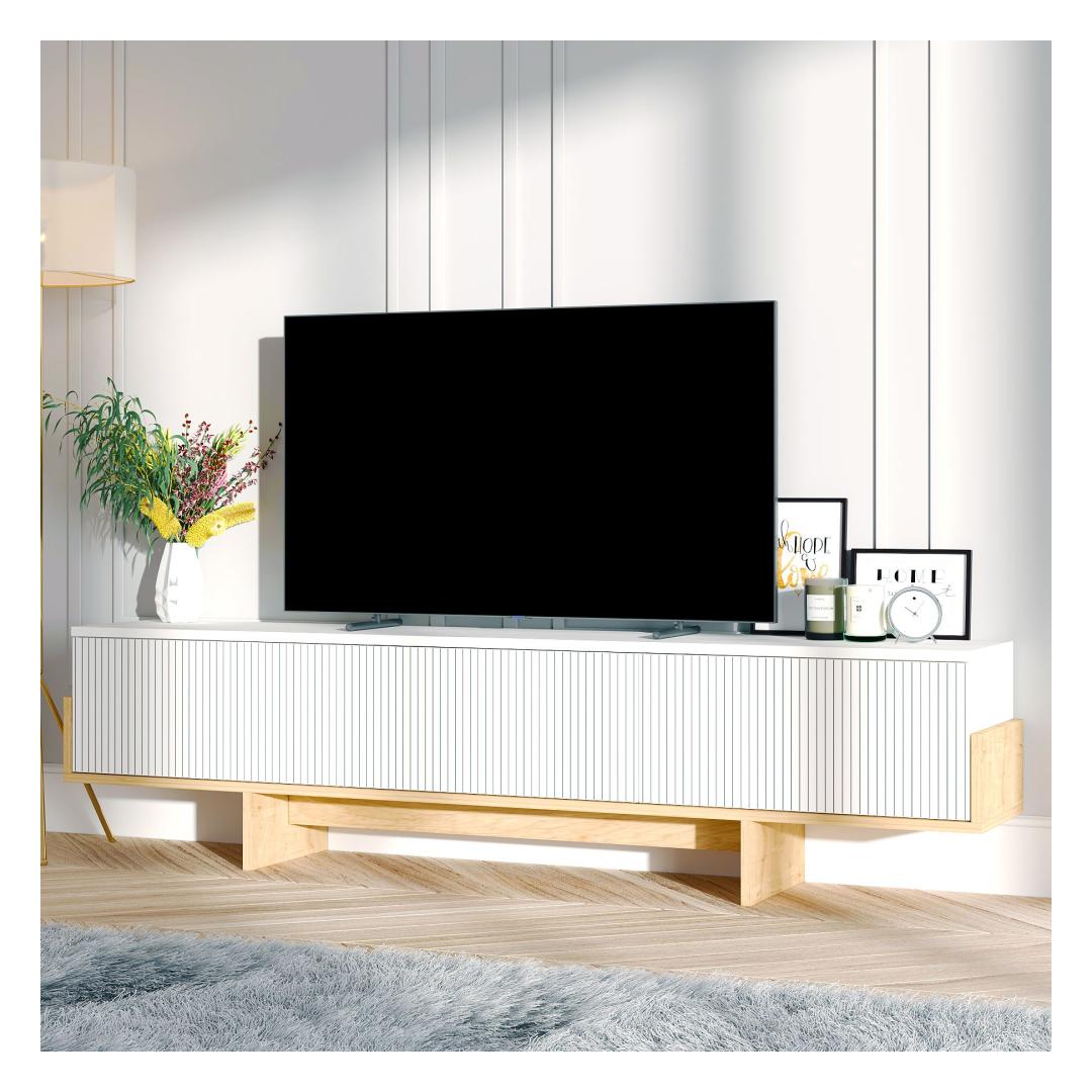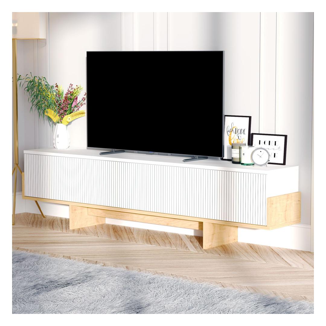 Say goodbye to clutter and hello to sophistication with our TV stand. Its clean lines and contemporary design will instantly elevate the look of your living room, creating a focal point that is both functional and stylish. Whether you're binge-watching your favorite shows or hosting a movie night with friends, this TV stand will provide the perfect backdrop for all your entertainment needs.