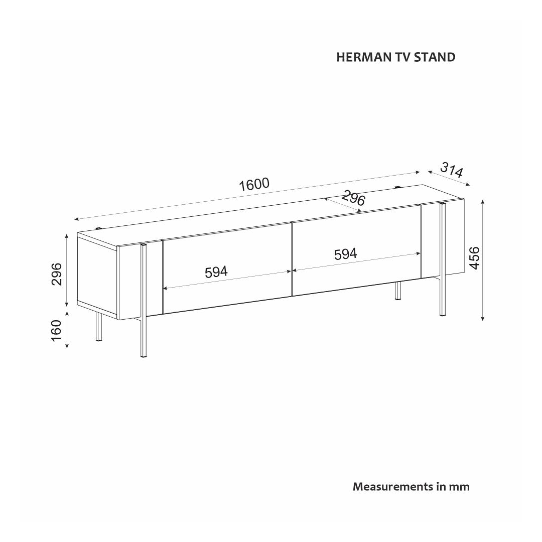 Perfect Size: With dimensions of 160cm in width, 45.6cm in height, and 31.4cm in depth, this TV stand is the perfect size for most living rooms. The 16cm leg height adds a touch of elegance to the design.