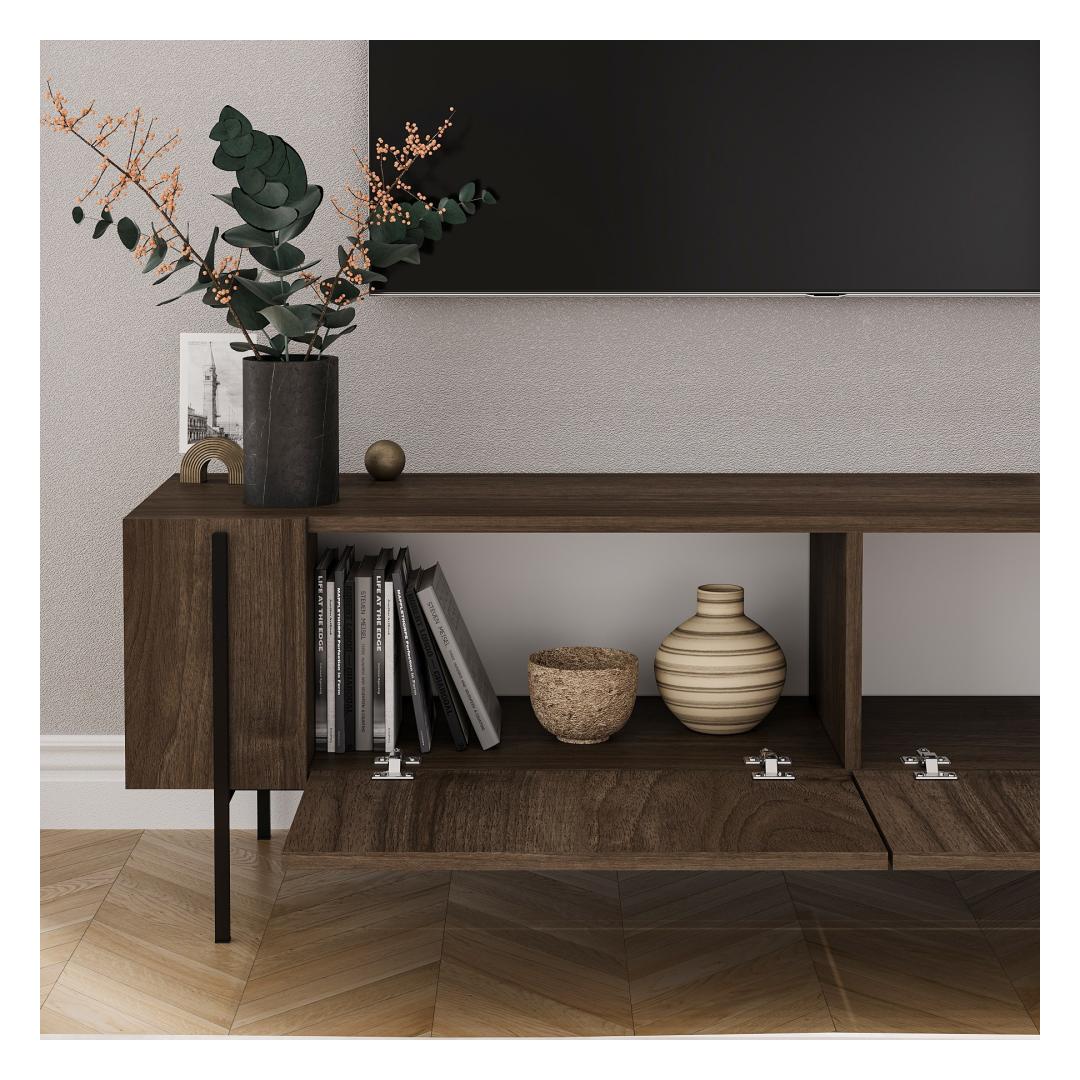 Transform your living room into a stylish and organized space with our stunning TV stand in Walnut color. This TV stand is not just a piece of furniture, it's a statement of elegance and sophistication.