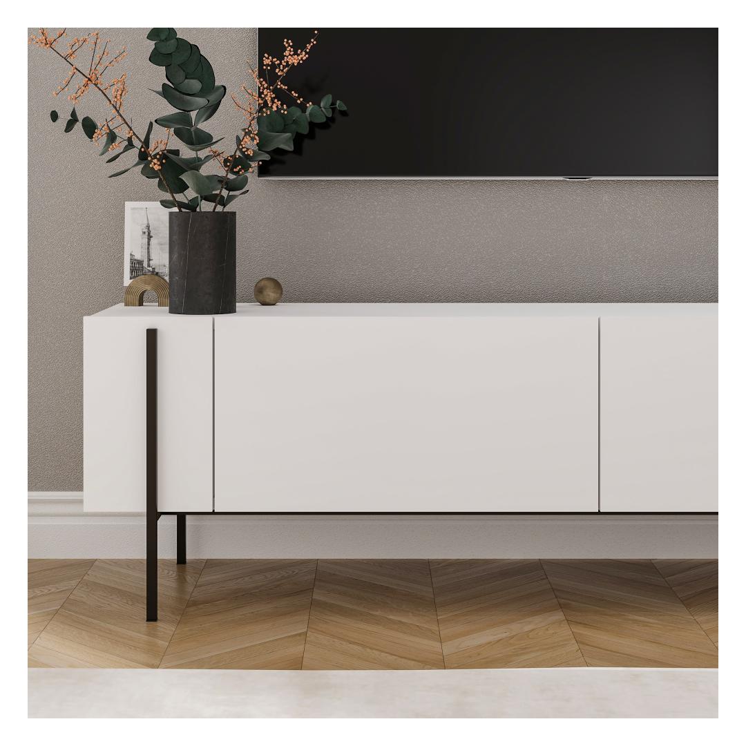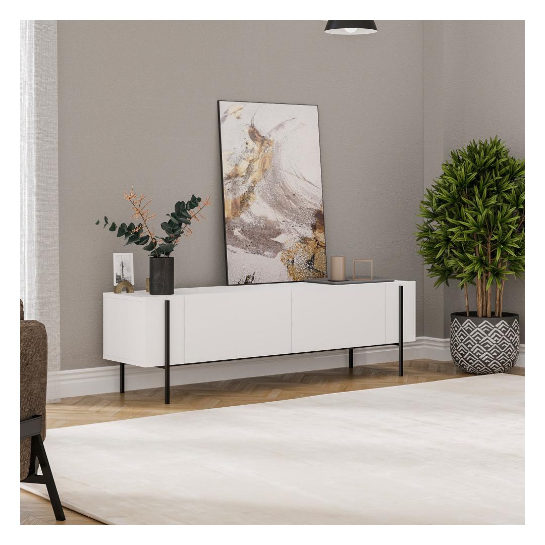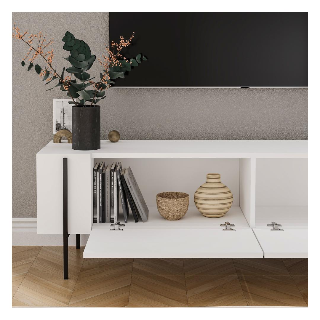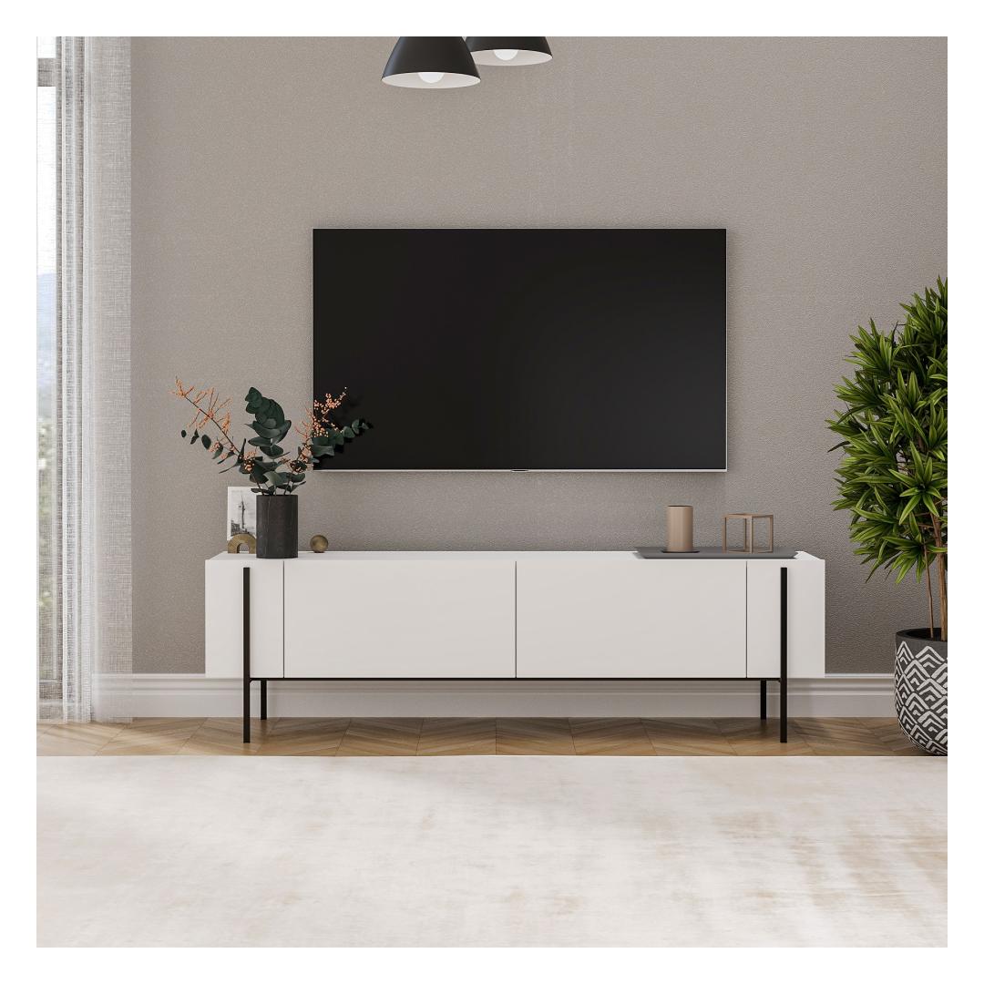 Whether you're watching your favorite show or hosting a movie night with friends, this TV stand will be the focal point of your living room. The sleek white color adds a touch of sophistication, while the clean lines give it a modern and minimalist look. With plenty of storage space and a sturdy construction, this stand is as practical as it is stylish.