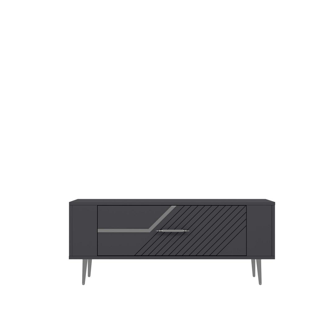 Transform your living room into a stylish and modern space with our sleek TV stand. Made from 100% melamine coated particle board, this stand is not only durable but also exudes elegance and sophistication. The combination of anthracite and silver colors adds a touch of luxury to any room, making it the perfect addition to your home decor.