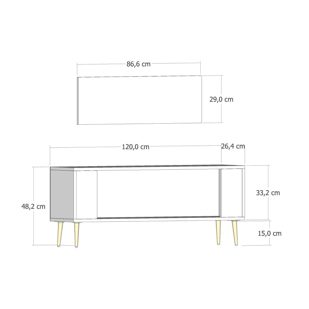 Say goodbye to clutter and disorganization with our TV stand that offers ample storage space for all your media essentials. The 18mm thickness ensures stability and sturdiness, while the 120cm width provides enough room for your television and other entertainment devices. The 15cm leg height adds a touch of elegance and makes cleaning underneath a breeze.