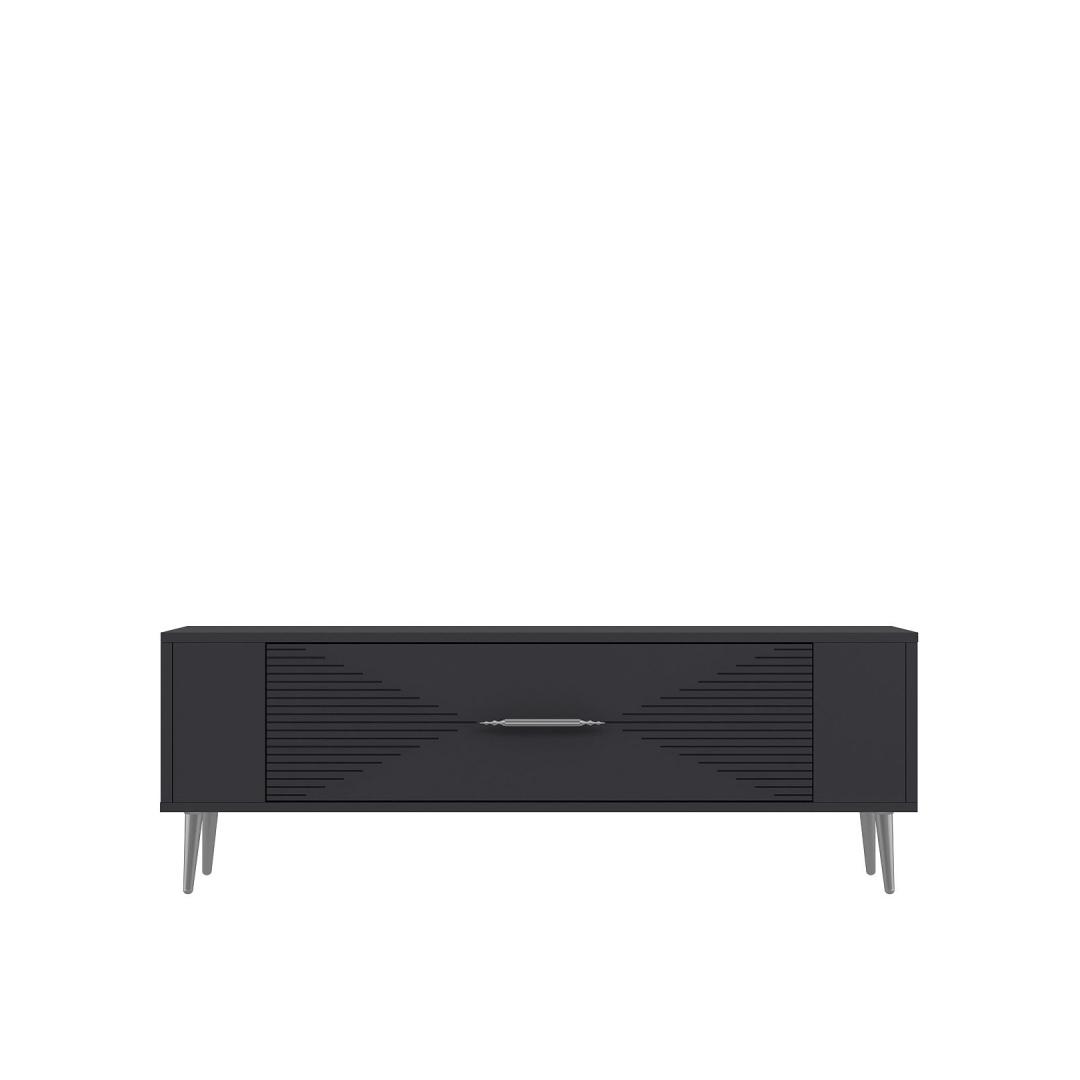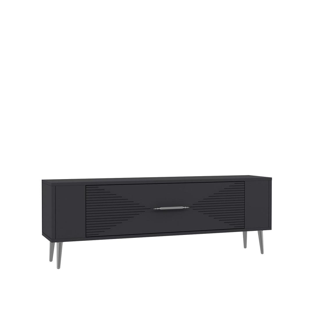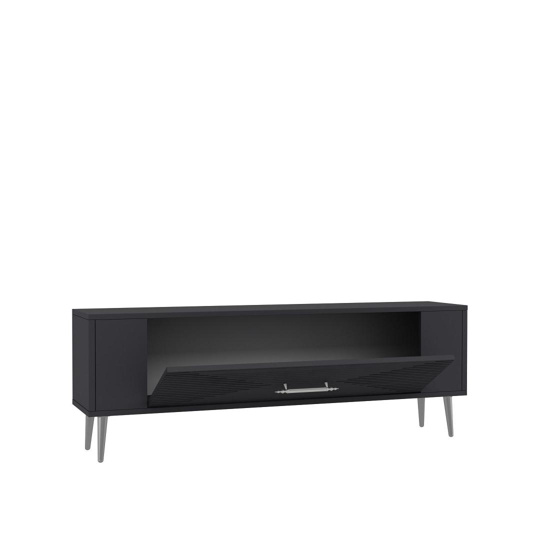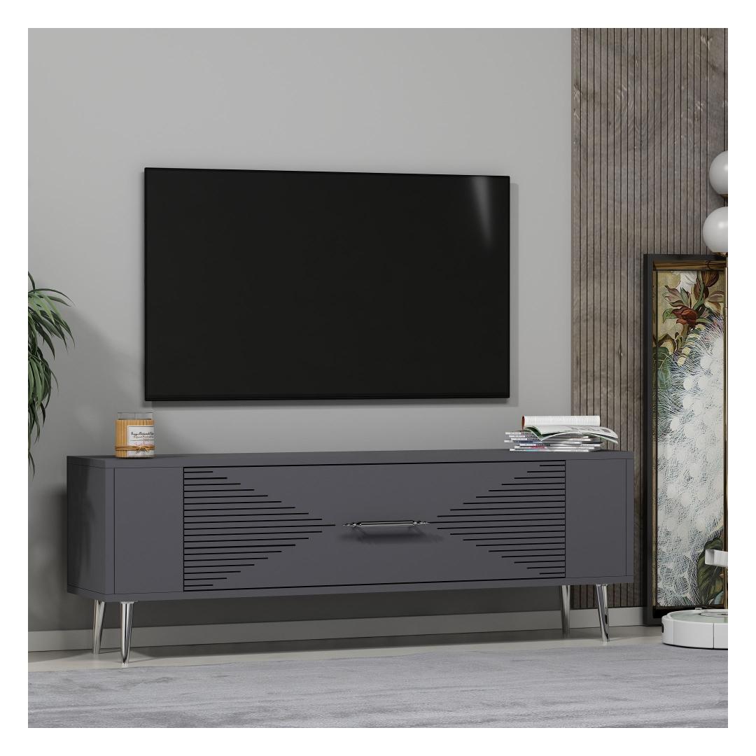 With a sleek design featuring Anthracite and Silver colors, this TV stand will effortlessly blend in with any interior style. The clean lines and minimalist aesthetic make it a perfect addition to your living room or entertainment area.