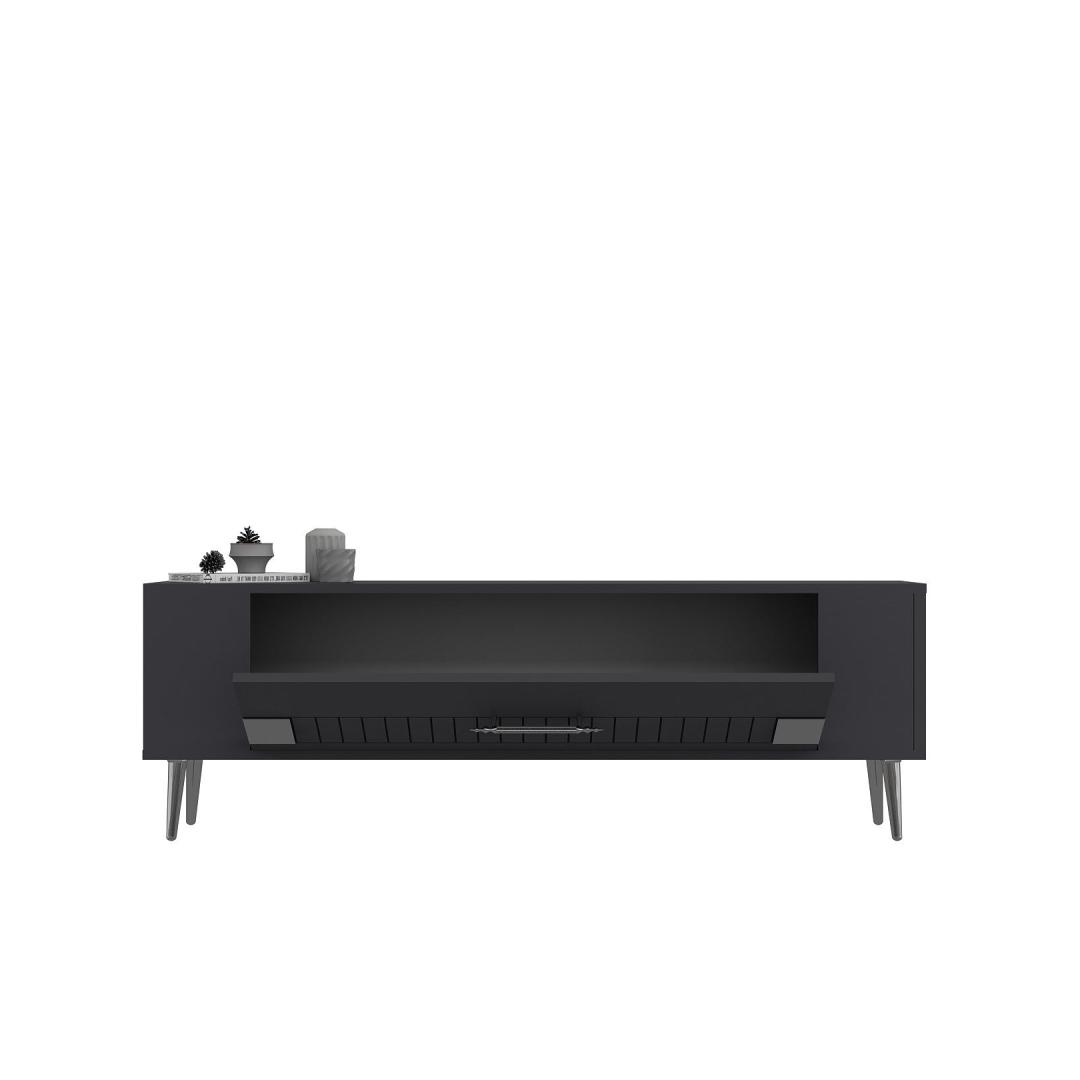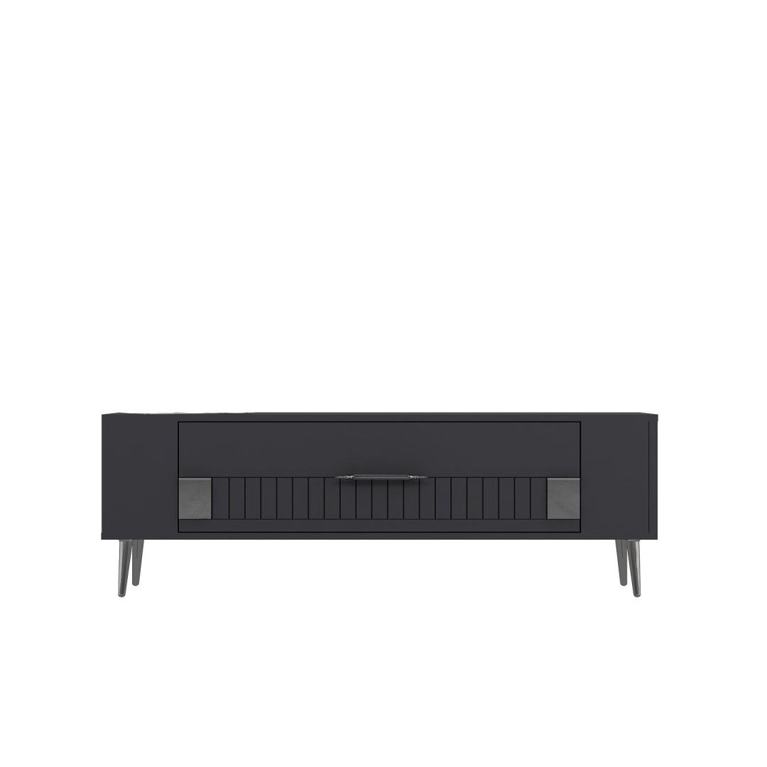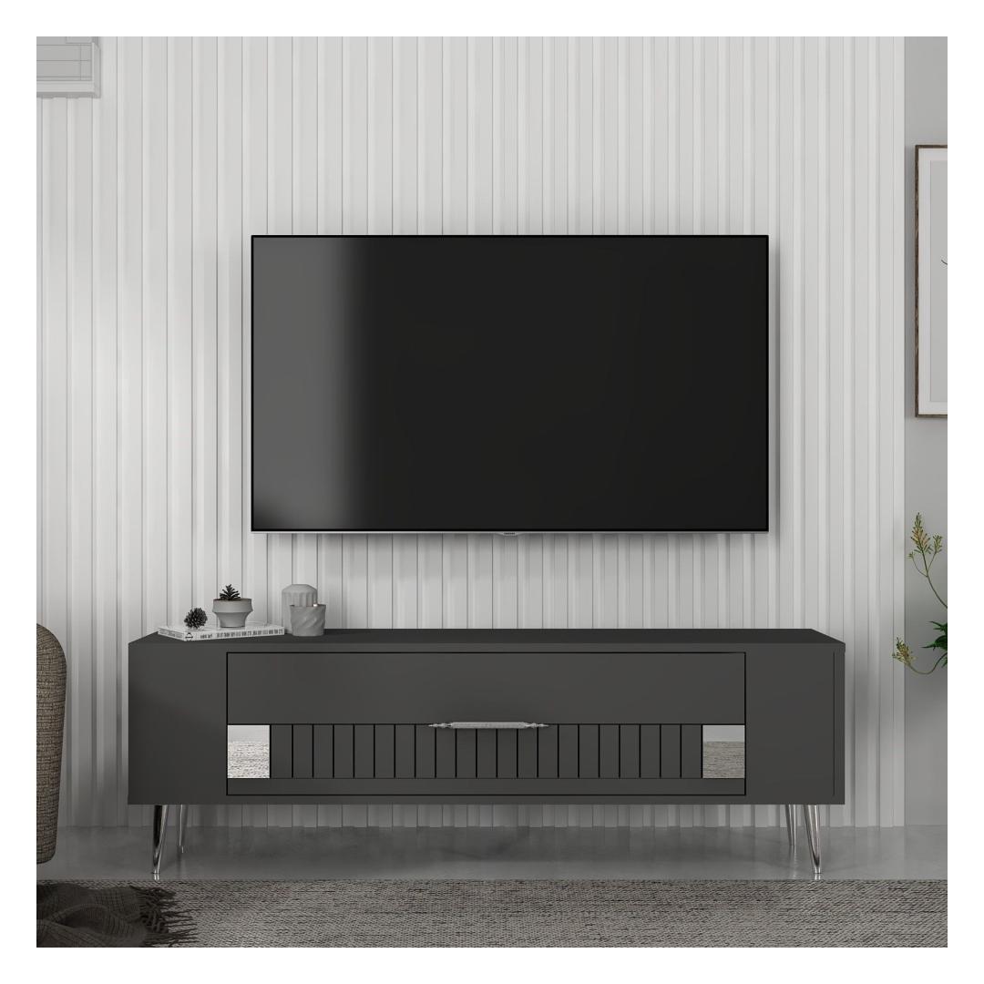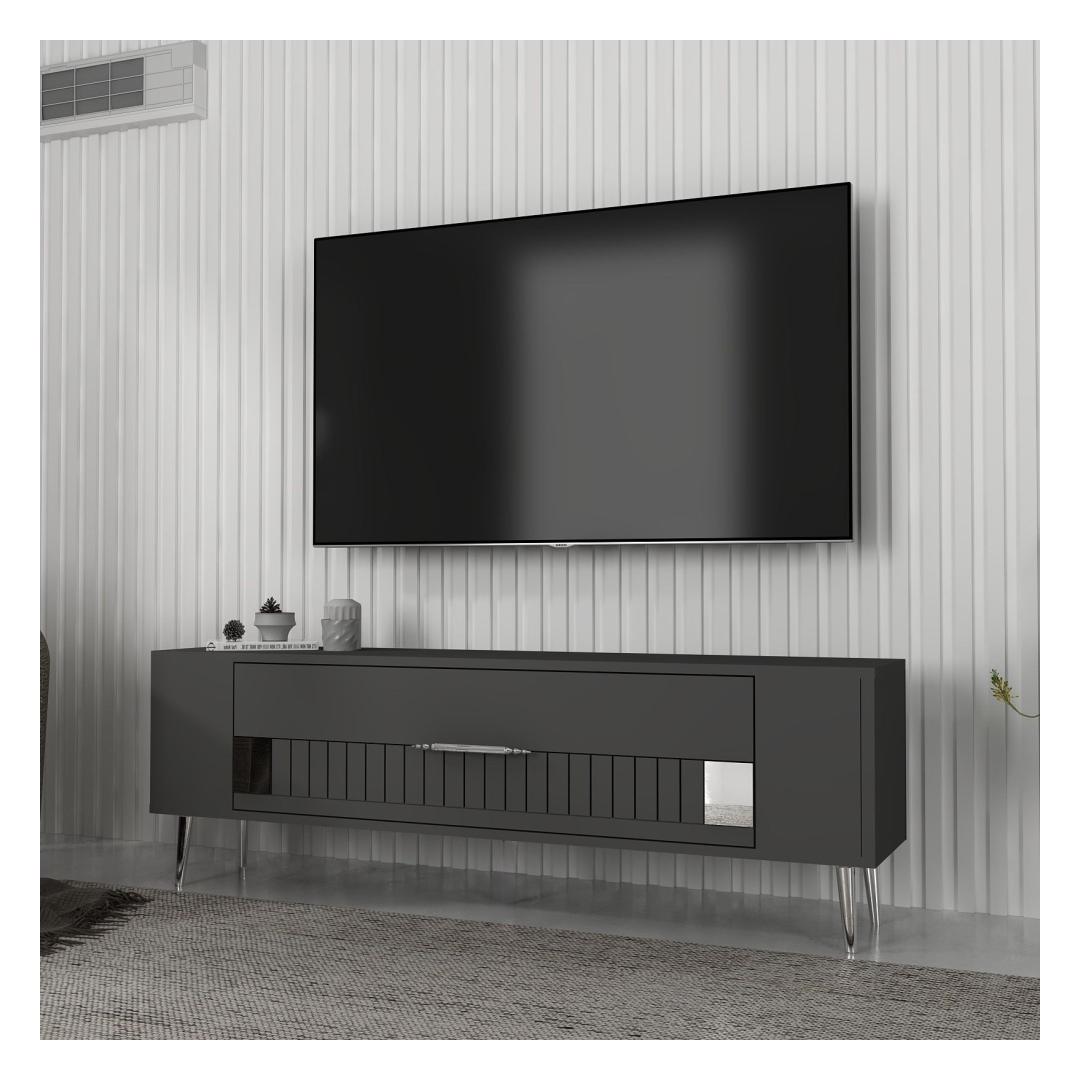 With a sleek design featuring Anthracite and Silver colors, this TV stand will effortlessly blend in with any interior style. The clean lines and minimalist aesthetic make it a perfect addition to your living room or entertainment area.