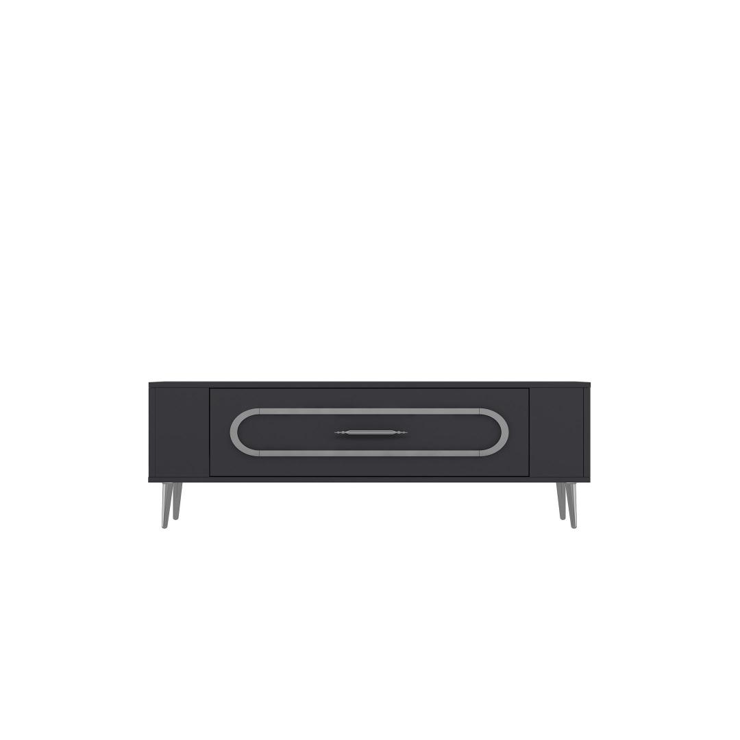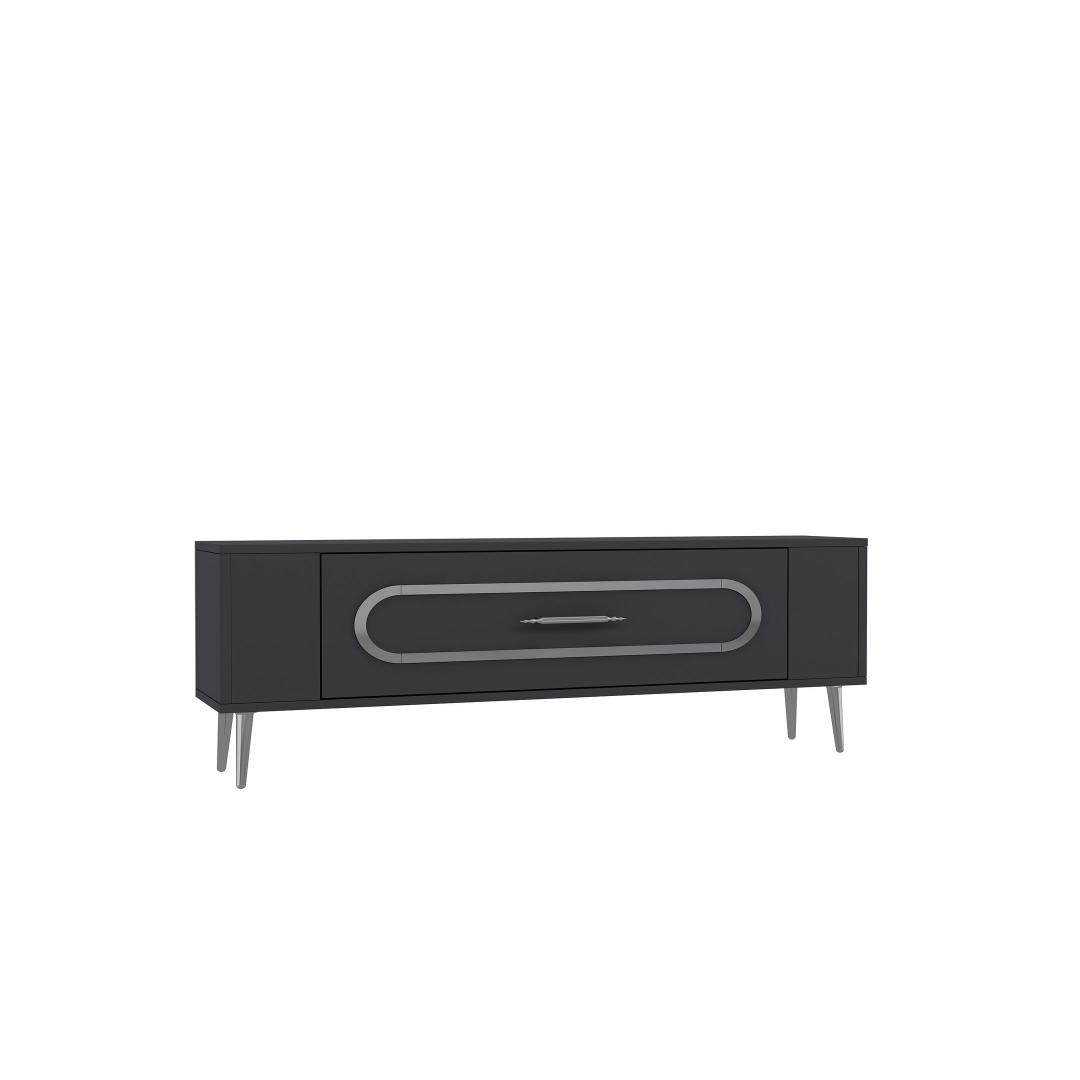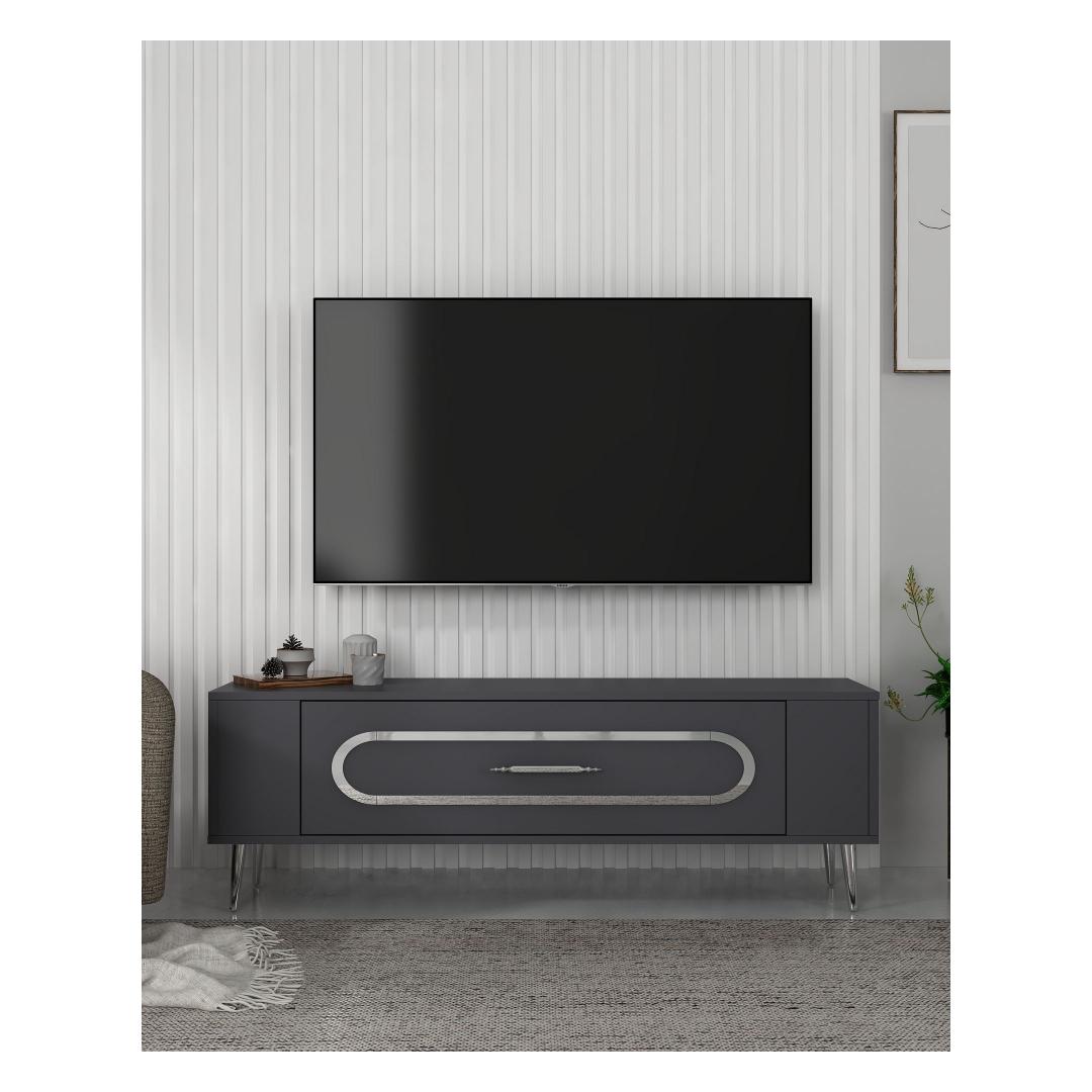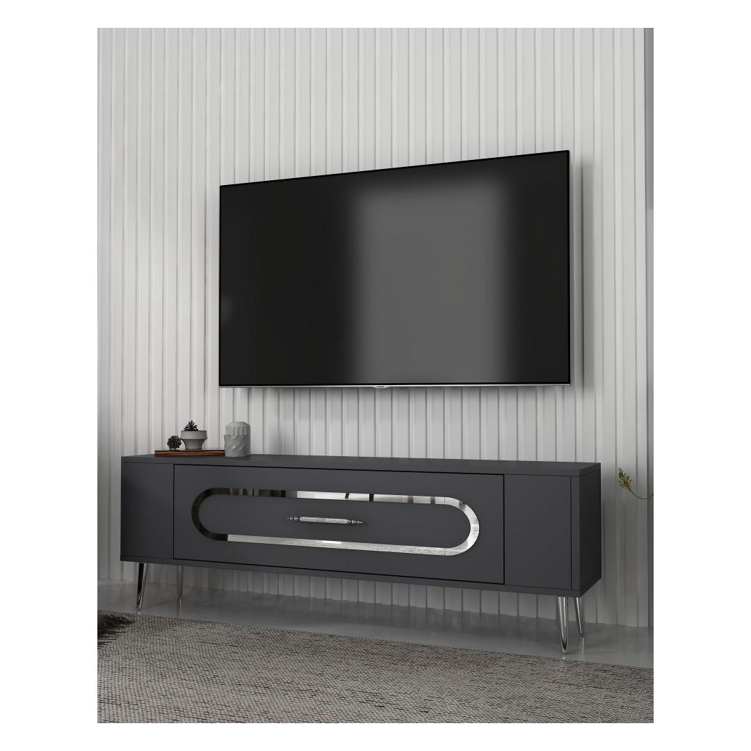 With a sleek design featuring Anthracite and Silver colors, this TV stand will effortlessly blend in with any interior style. The clean lines and minimalist aesthetic make it a perfect addition to your living room or entertainment area.
