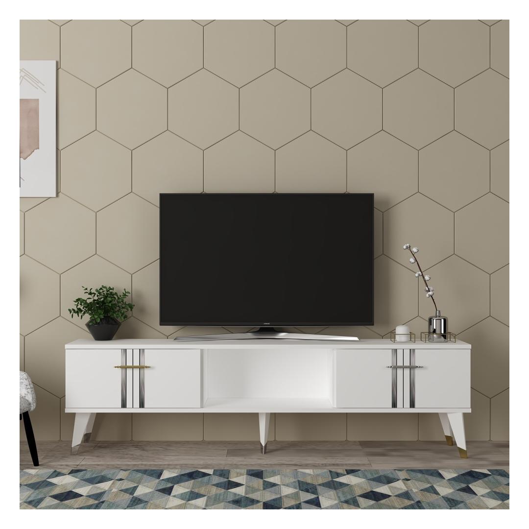 Constructed with 18mm thick particle board, this TV stand is built to last. The sturdy design ensures that your television is securely supported, while the sleek finish adds a touch of luxury to your living room. Whether you're watching your favorite show or hosting a movie night, this stand will provide the perfect backdrop for all your entertainment needs.