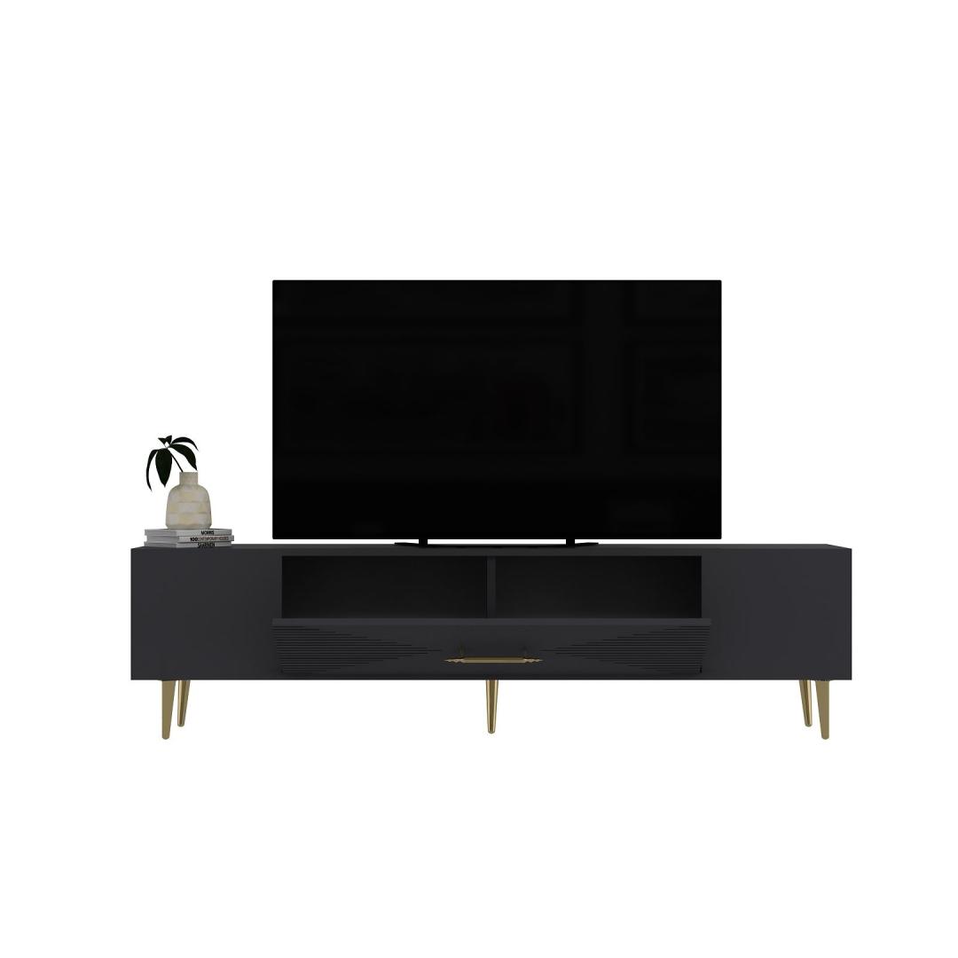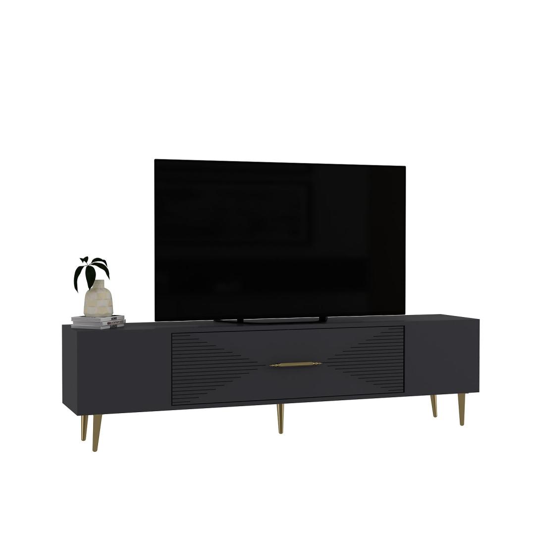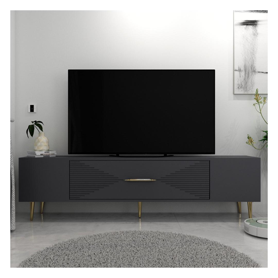 Transform your living room into a stylish and sophisticated space with our stunning TV stand. The sleek design and elegant color combination of anthracite and gold will instantly elevate the look of your entertainment area.