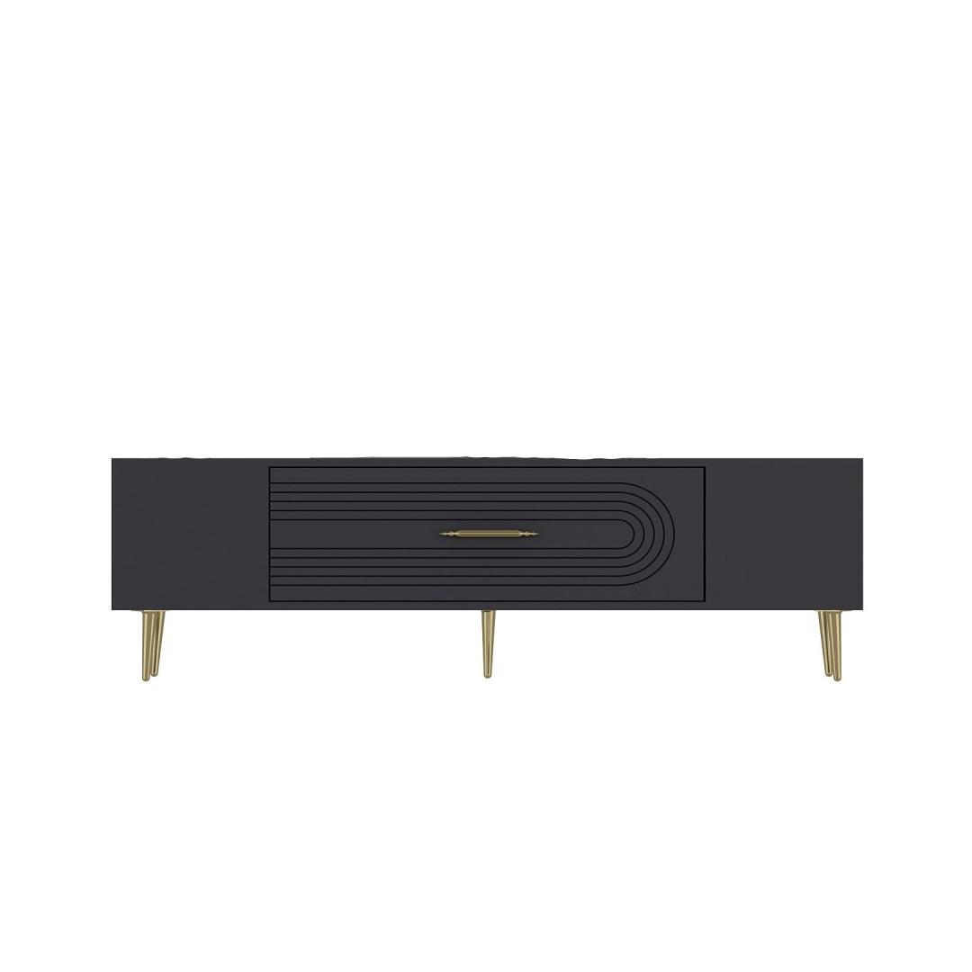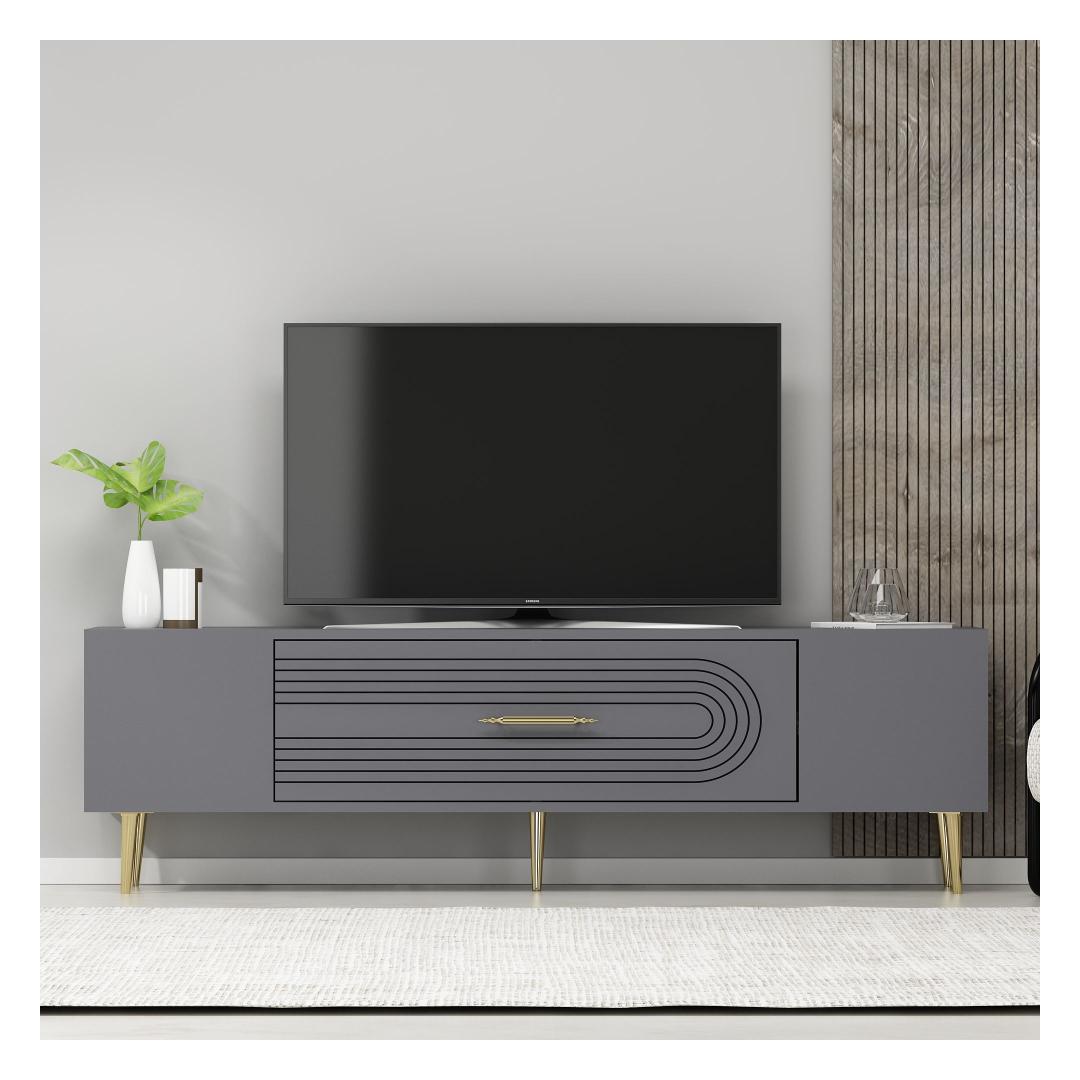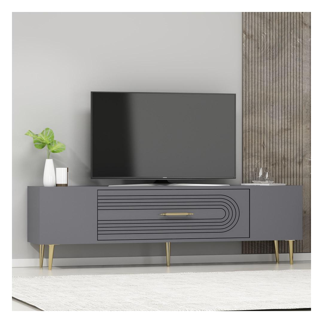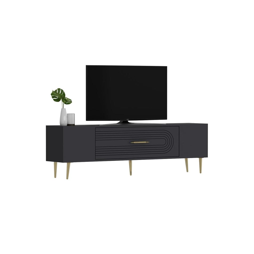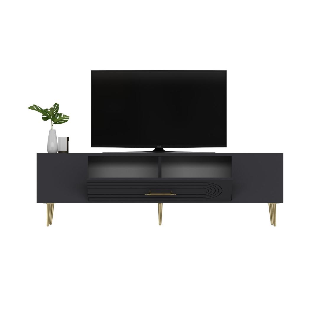 Transform your living room into a stylish and sophisticated space with our stunning TV stand. The sleek design and elegant color combination of anthracite and gold will instantly elevate the look of your entertainment area.