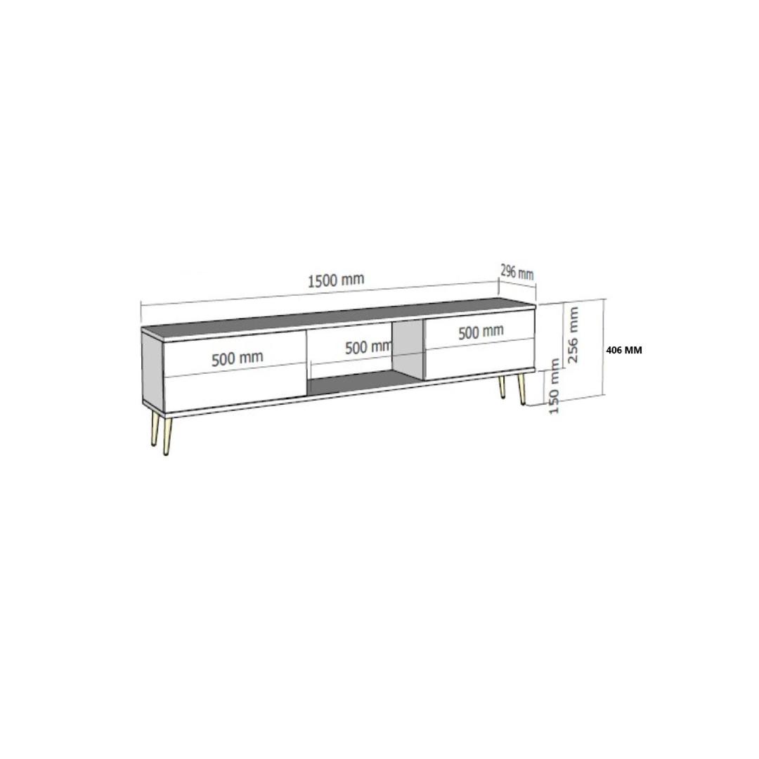 Say goodbye to clutter and disorganization with our spacious TV stand that offers ample storage for all your media essentials. The 18mm thickness ensures stability and durability, while the 150cm width provides plenty of room for your television and other electronics. The 40.6cm height and 29.6cm depth offer the perfect balance of functionality and style.