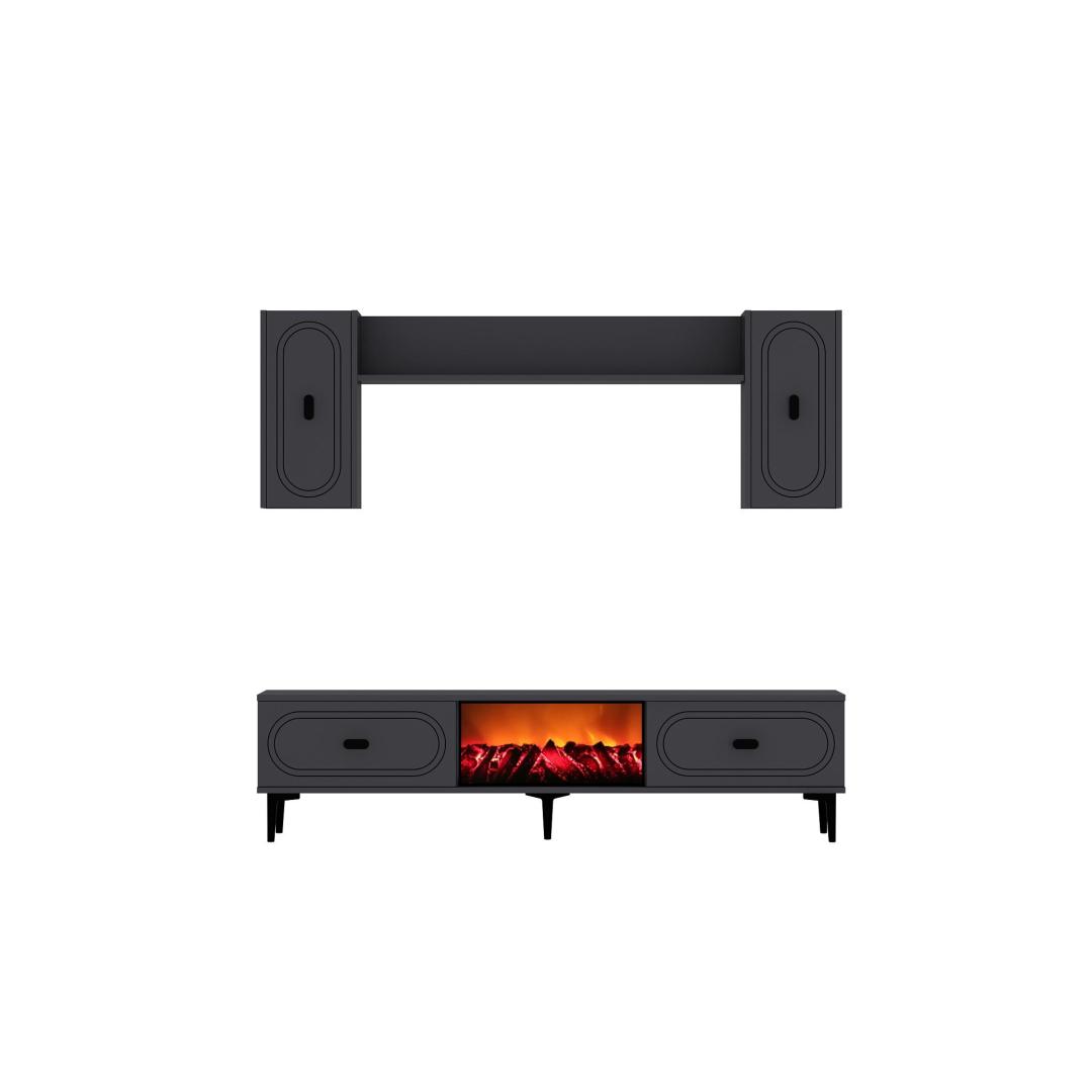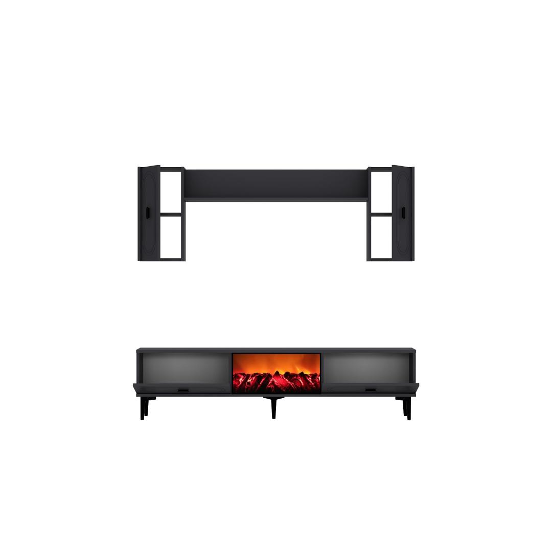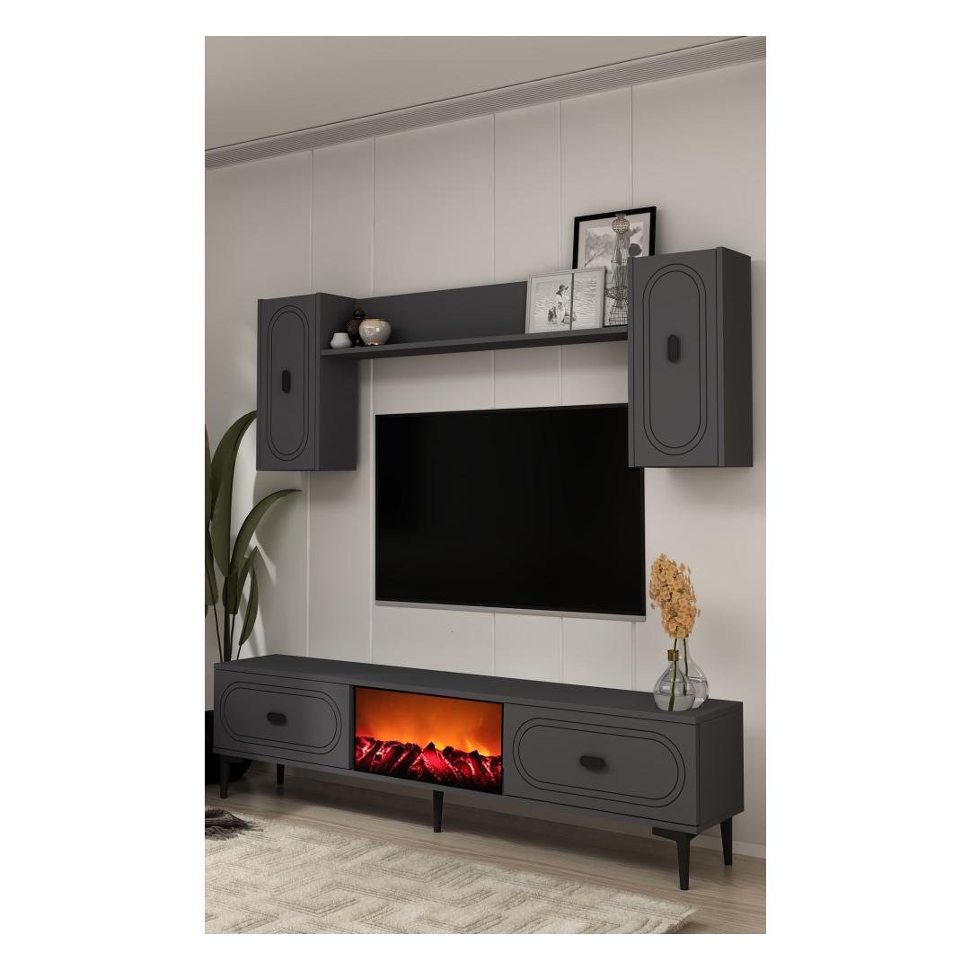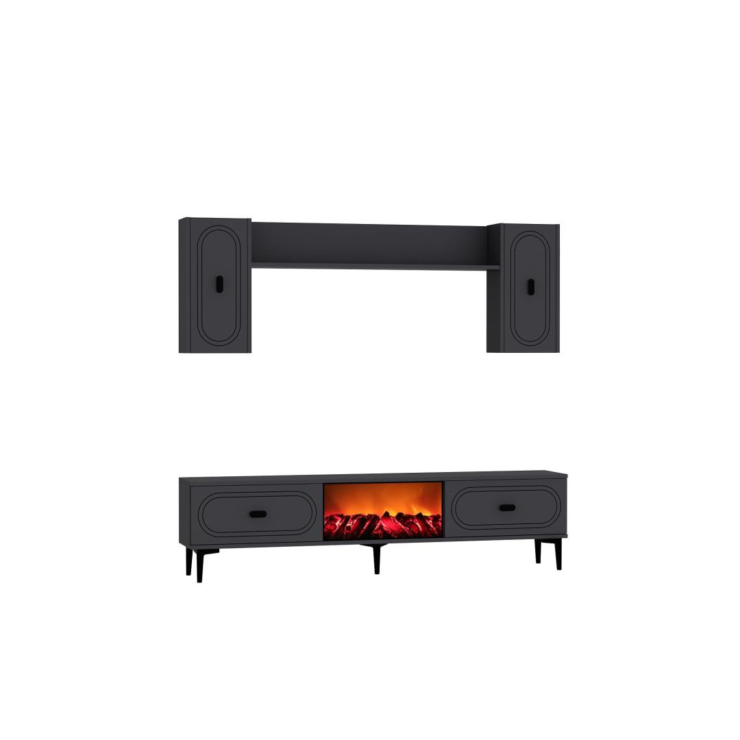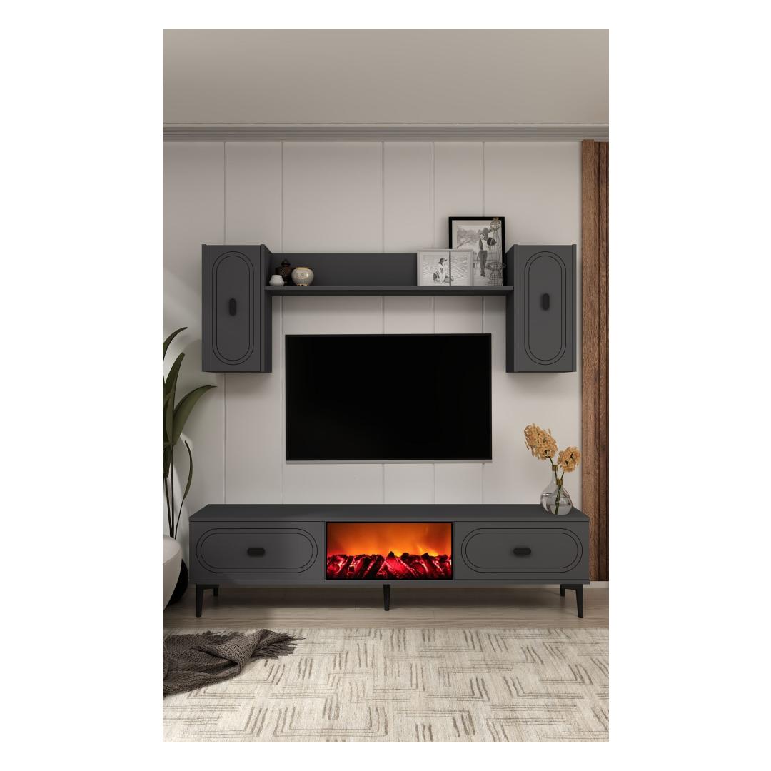 With its sleek design and anthracite color, this TV unit will instantly elevate the look of your living room. The TV stand and wall shelf provide ample storage space for your TV, media players, and decorative items, keeping your space clutter-free.