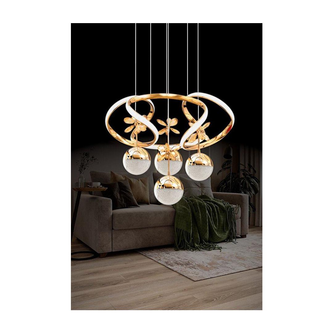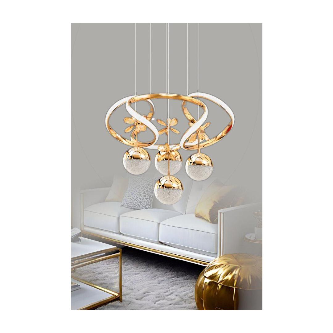 Transform your living space into a luxurious haven with our exquisite Gold Chandelier. This stunning piece features a sleek metal body and a delicate glass cap, adding a touch of elegance to any room. The adjustable height allows you to customize the look to fit your space perfectly, while the warm glow of the 4 LED lights creates a cozy and inviting atmosphere.