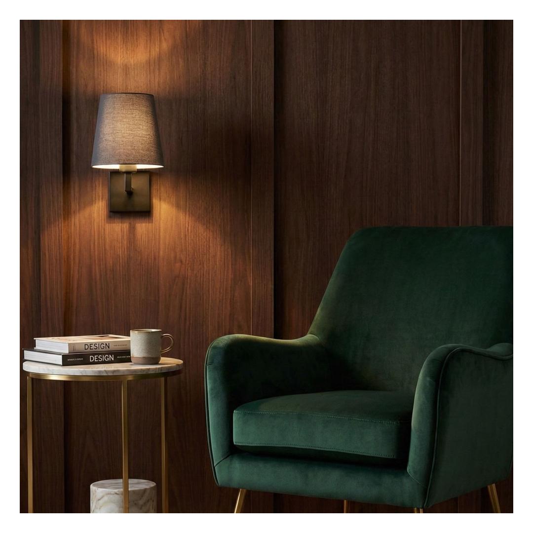 Featuring a fabric cap, this wall lamp adds a touch of elegance and warmth to your space. The soft and inviting glow emitted through the fabric creates a cozy atmosphere, perfect for relaxing evenings or intimate gatherings. Let the gentle light embrace your surroundings and create a soothing environment.