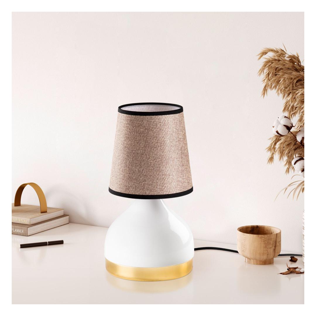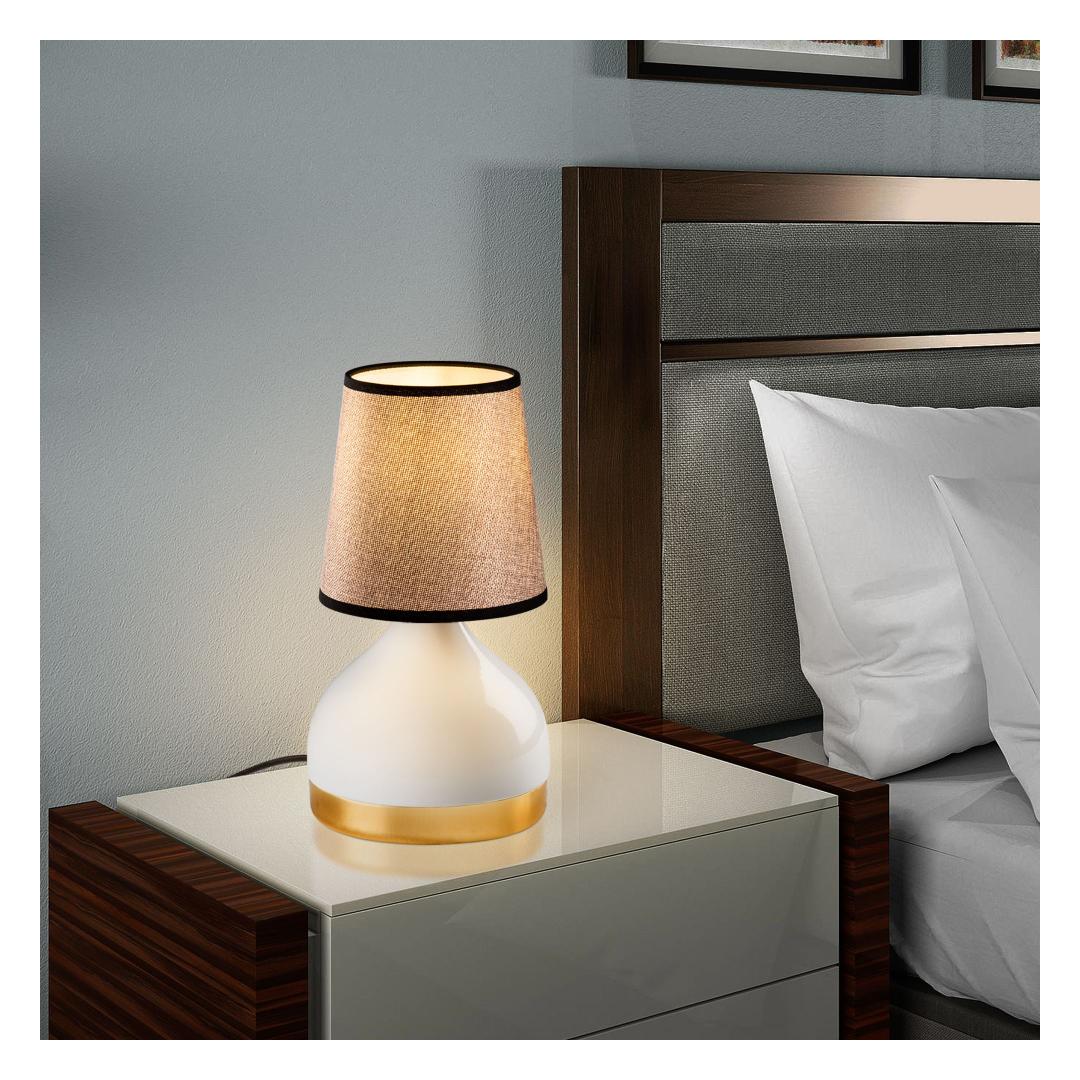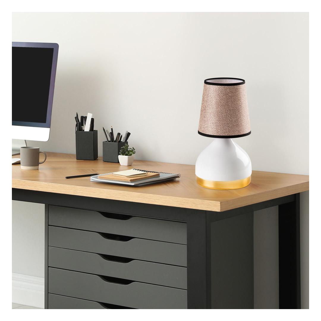 Whether you're looking to brighten up your living room, bedroom, or office, this table lamp is the perfect choice. The metal body adds a touch of elegance, while the fabric cap softens the light for a warm and inviting glow.