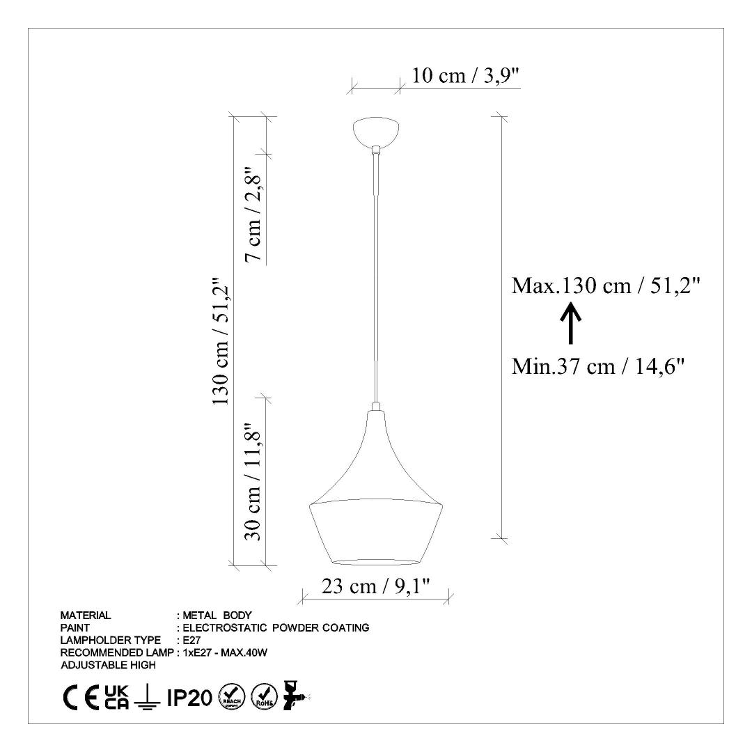 • Socket Type: 1 x E 27 Max 40 W