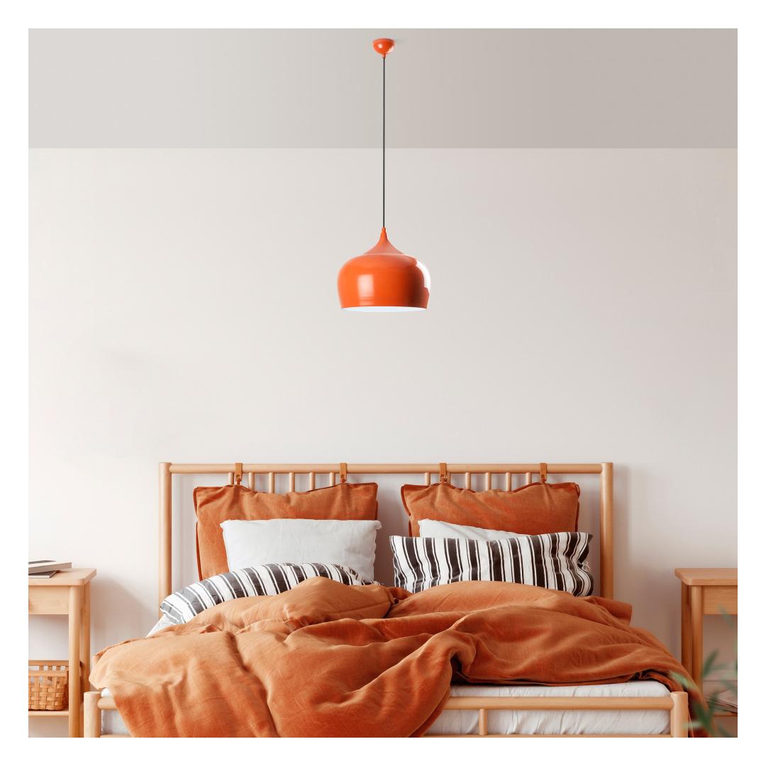 The vibrant orange color of this chandelier will instantly brighten up your space, adding a pop of color and style to your home decor. Whether you hang it in your living room, dining room, or bedroom, this chandelier is sure to make a statement and become the focal point of the room.