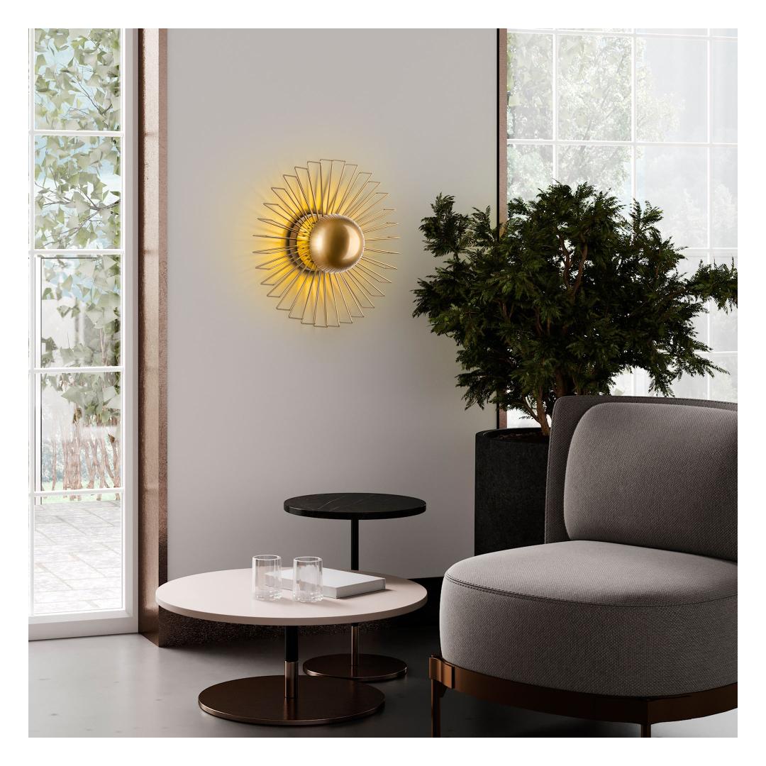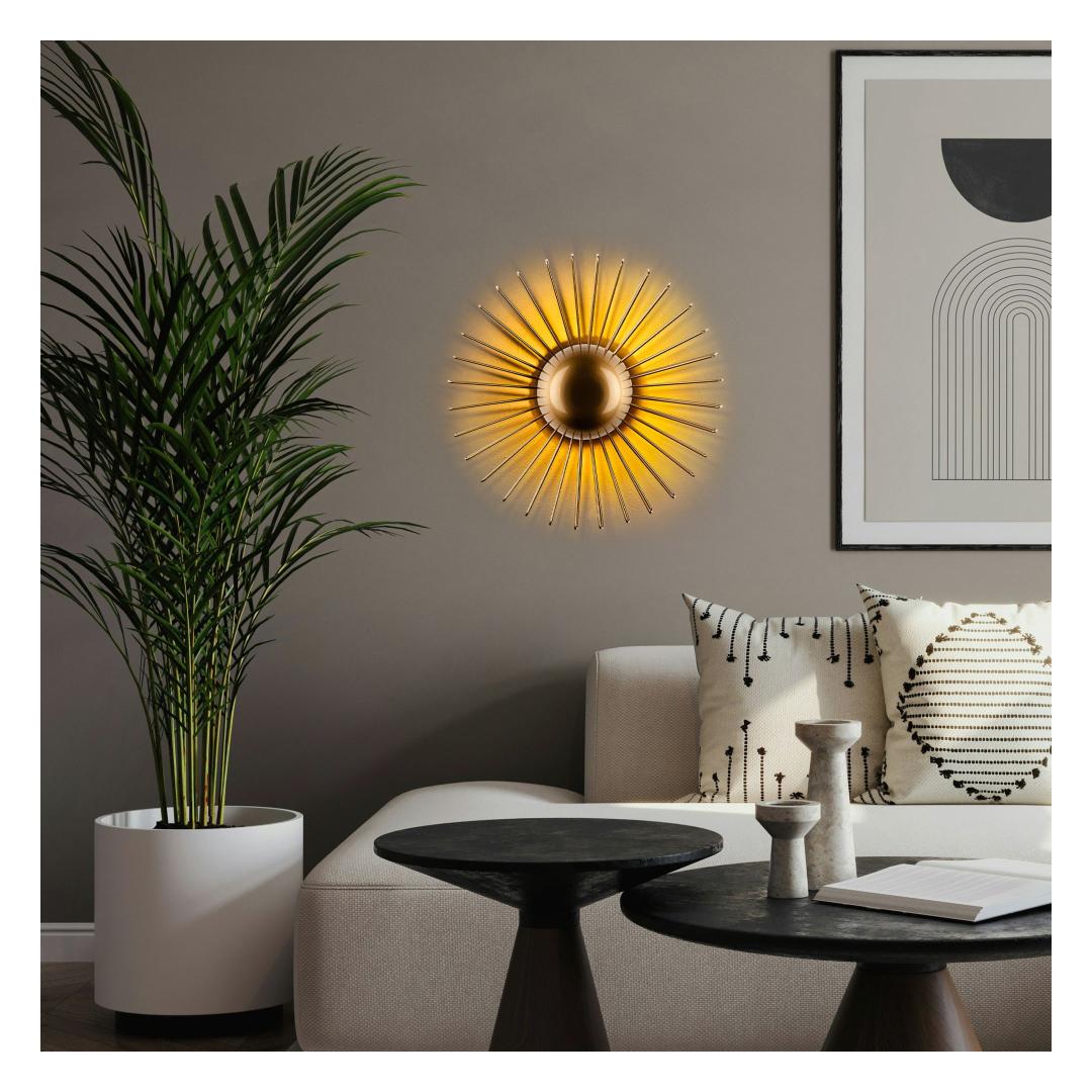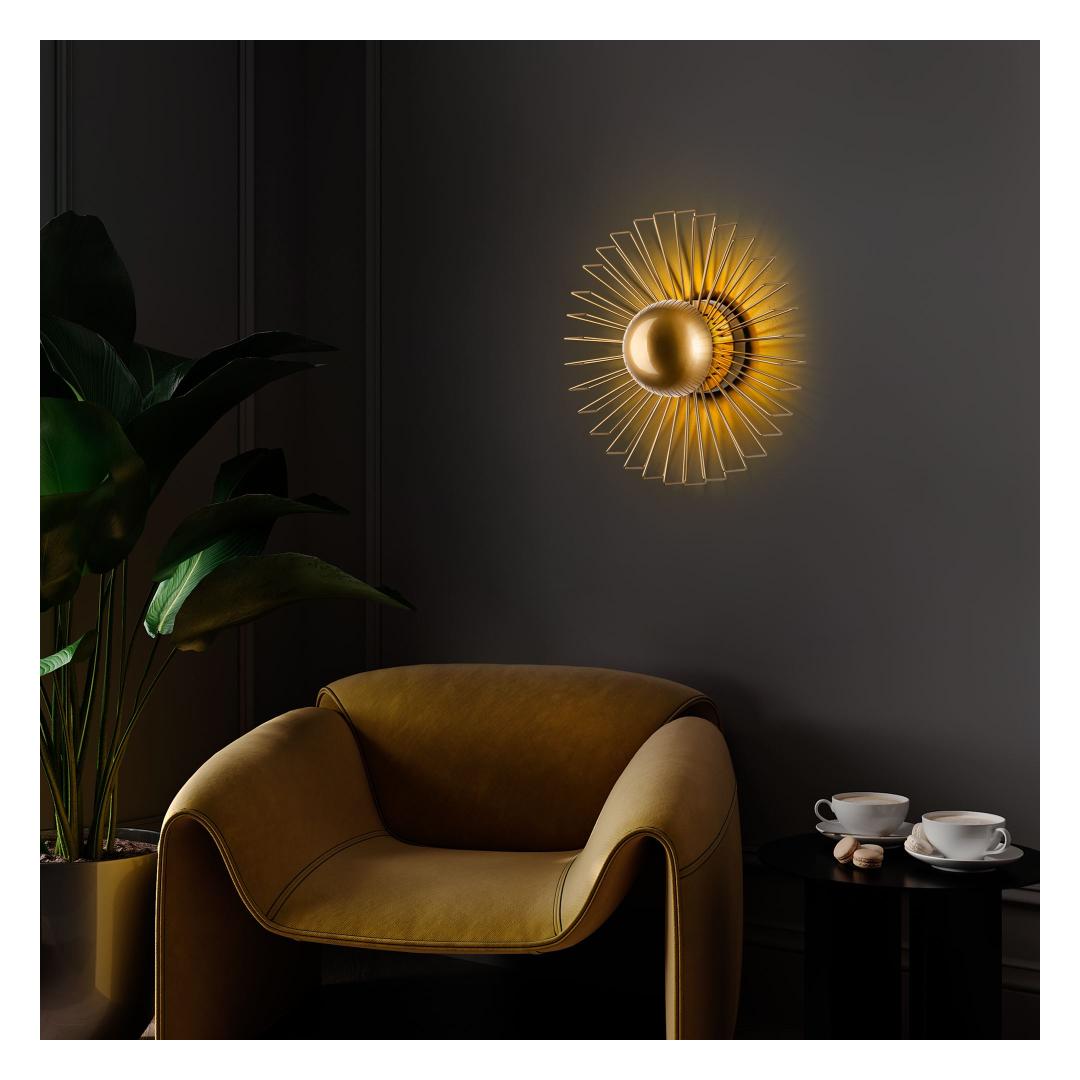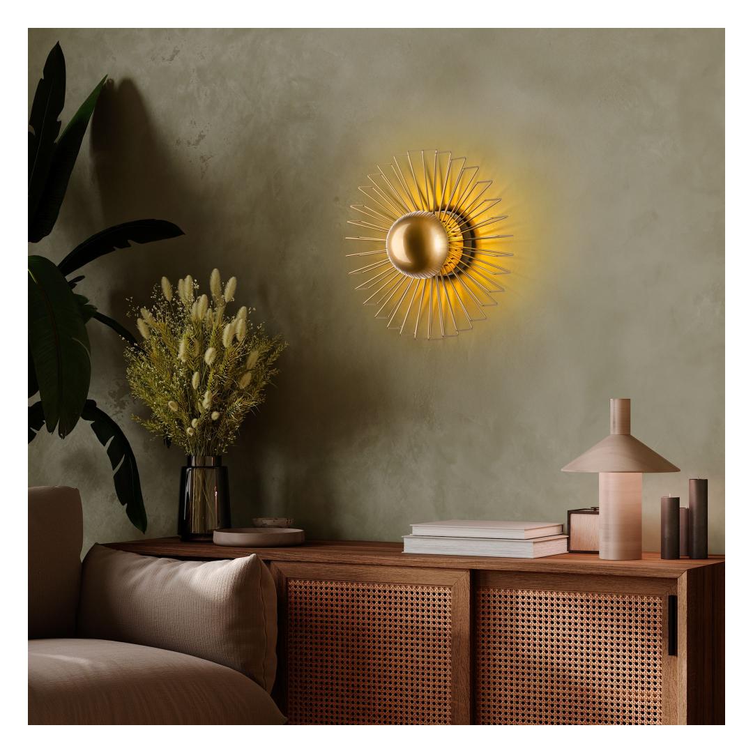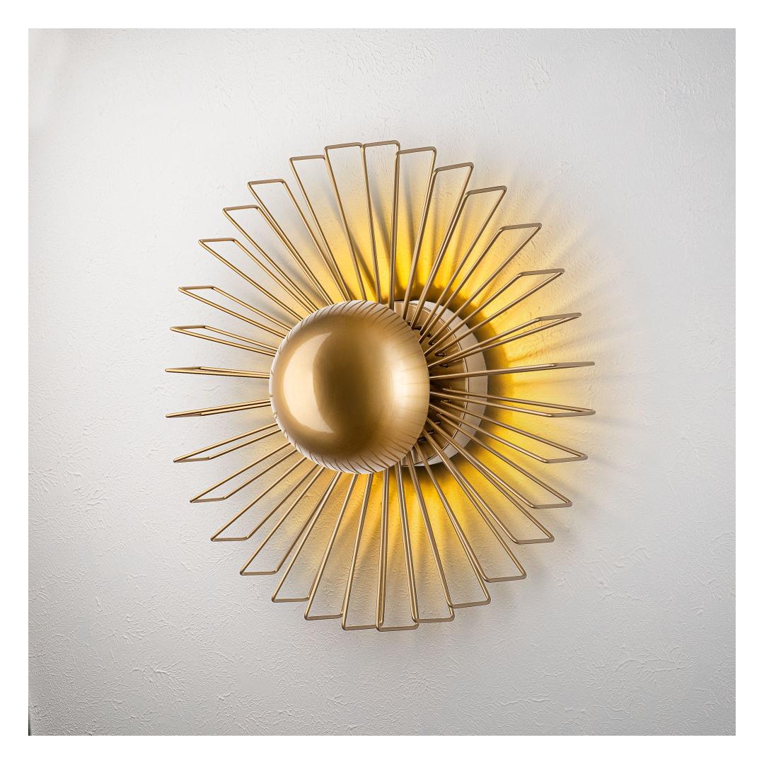 Illuminate your space with elegance and style with our stunning Metal Wall Lamp. This exquisite piece features a sleek metal body with a captivating gold finish, adding a touch of luxury to any room. The metal cap adds a modern touch, while the perfect size of 45 x 45 x 18 cm makes it ideal for any wall in your home.