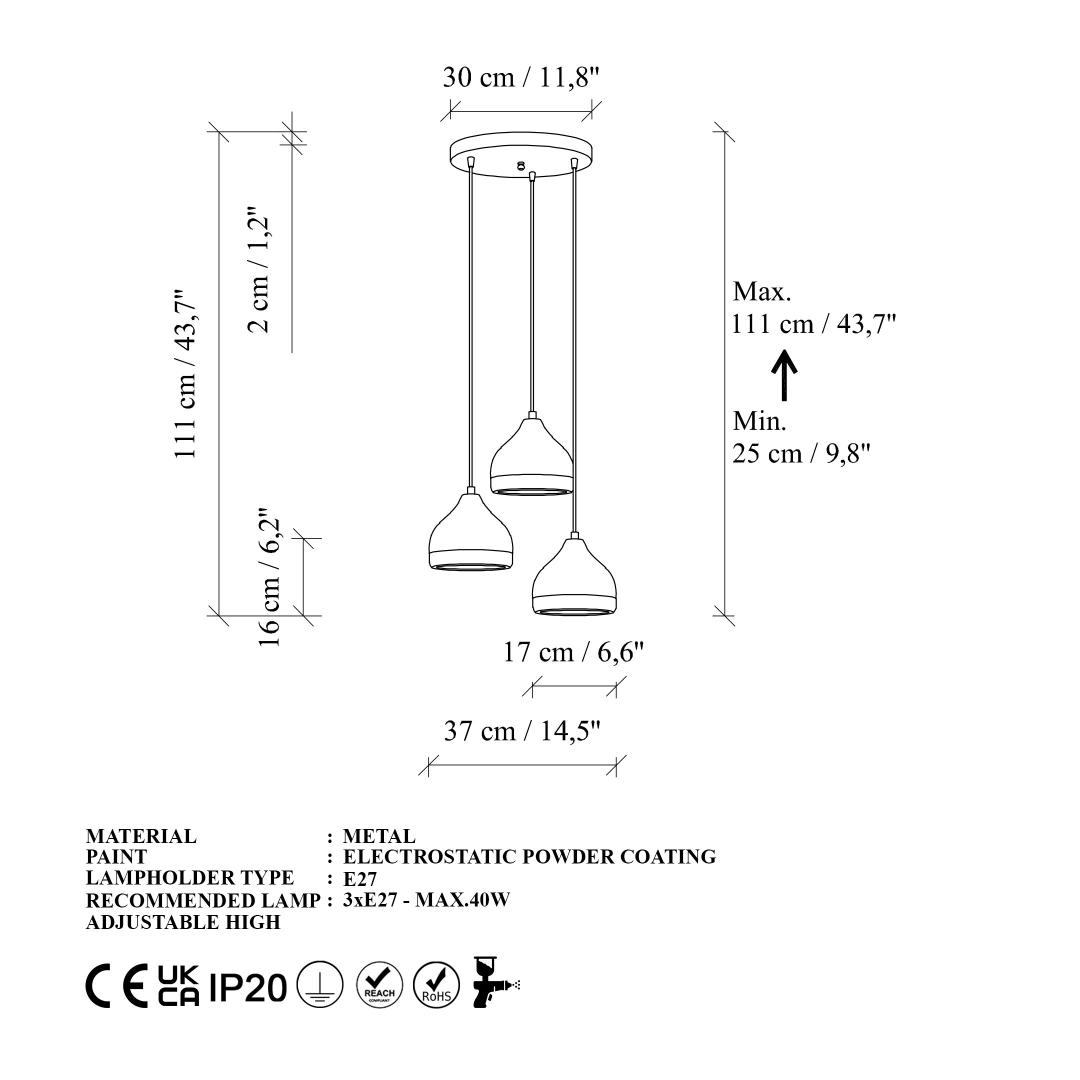 With three E27 sockets, this chandelier can accommodate up to 40W bulbs (not included), providing ample light to brighten up your room. The IP20 rating ensures safe use indoors, while the 220-240V compatibility makes it suitable for most homes.