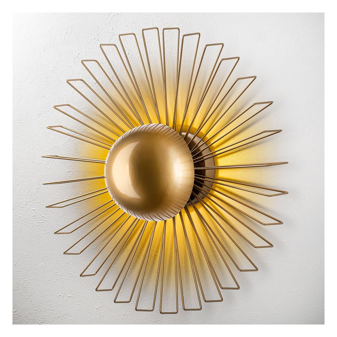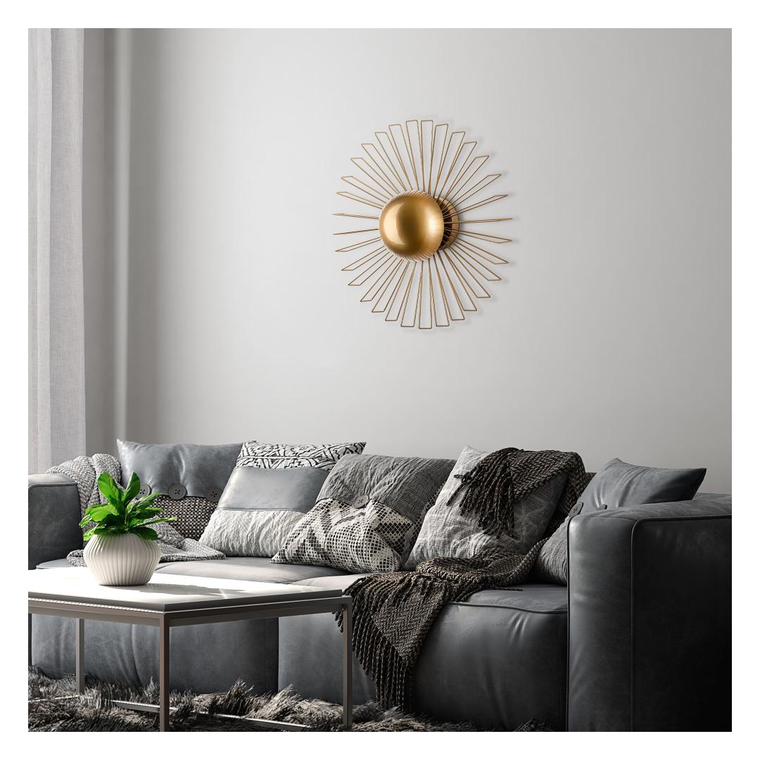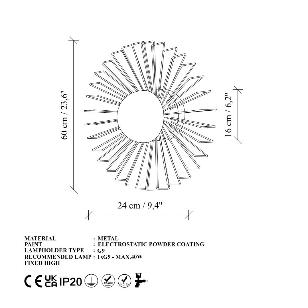 Illuminate your space with elegance and style with our stunning Metal Wall Lamp. This exquisite piece features a sleek metal body with a luxurious gold finish, adding a touch of sophistication to any room. The metal cap adds a modern touch, while the size of 60 x 60 x 24 cm makes it the perfect statement piece for your walls.