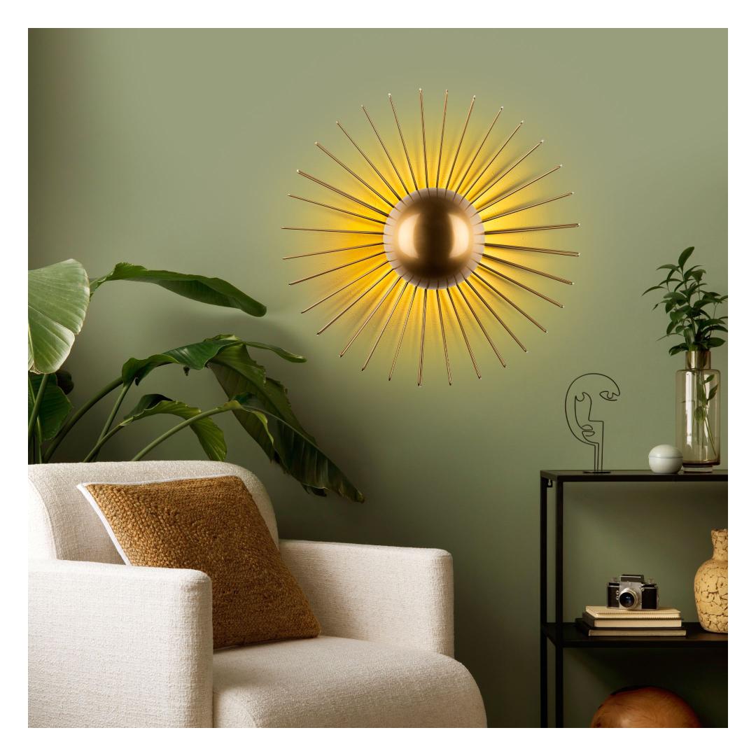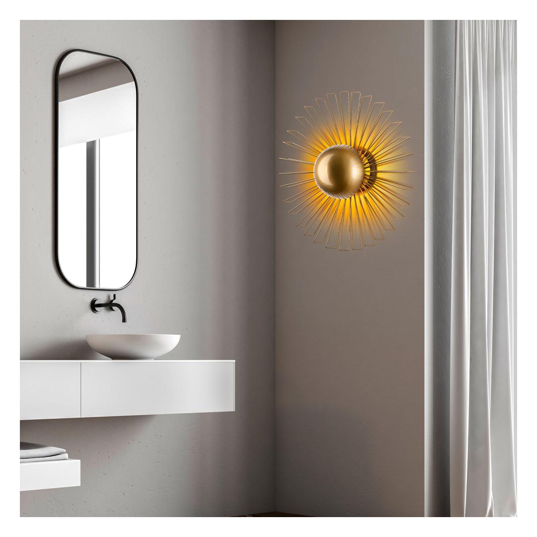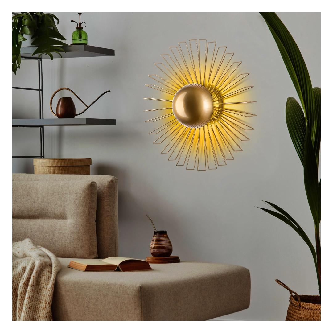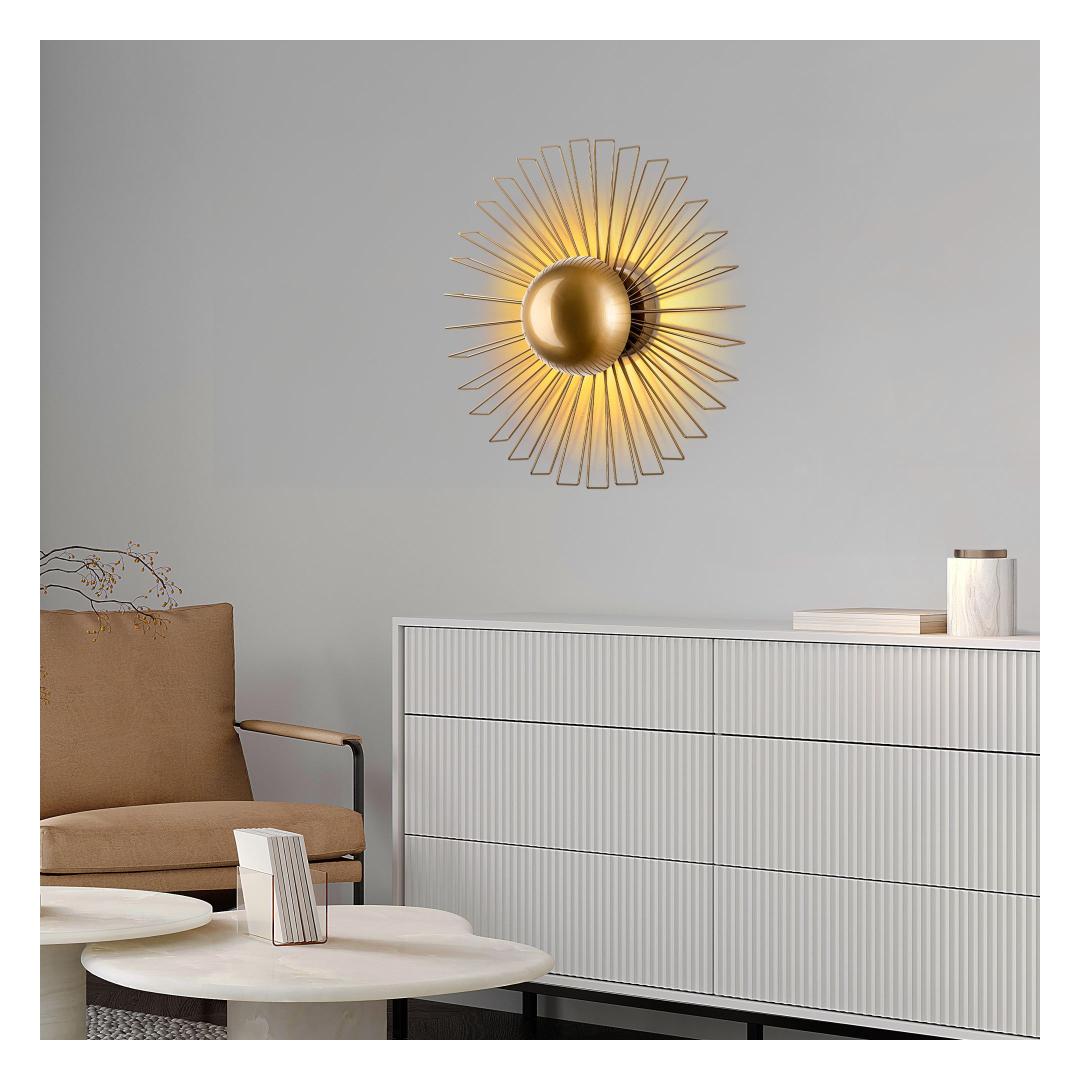 Illuminate your space with elegance and style with our stunning Metal Wall Lamp. This exquisite piece features a sleek metal body with a luxurious gold finish, adding a touch of sophistication to any room. The metal cap adds a modern touch, while the size of 60 x 60 x 24 cm makes it the perfect statement piece for your walls.