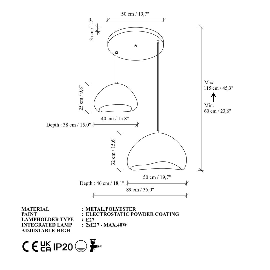 With a total height range of 60-115 cm, you can easily customize the chandelier to fit your space perfectly. The base plate size of Ø50 h:3 cm ensures stability and durability, so you can enjoy this stunning piece for years to come.