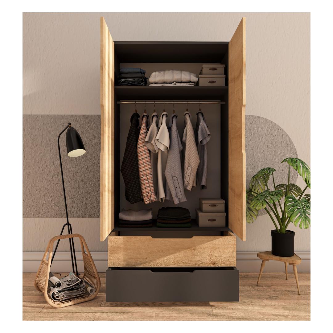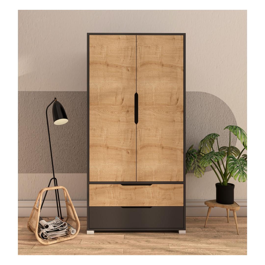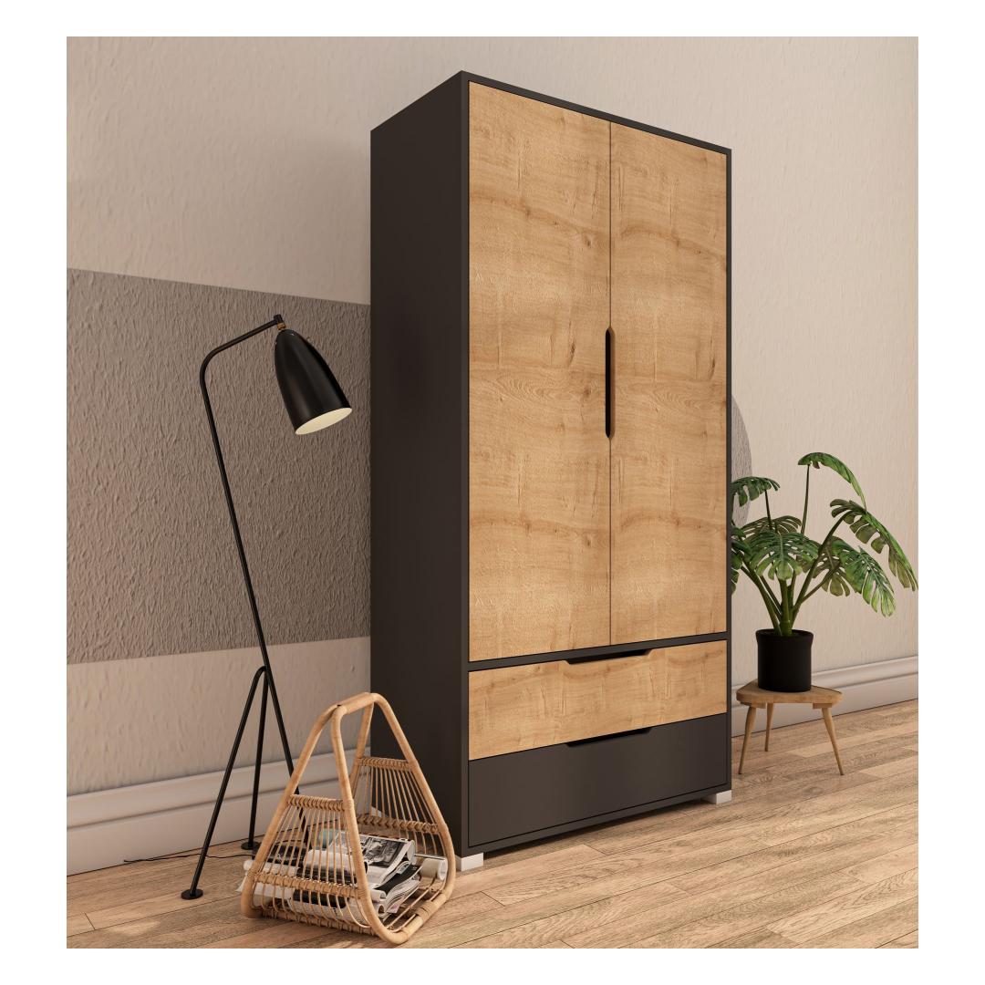 With its sleek design and modern colors, this wardrobe will instantly elevate the look of any room. The Anthracite and Sapphire Oak colors blend seamlessly with any decor, giving your space a sophisticated touch.