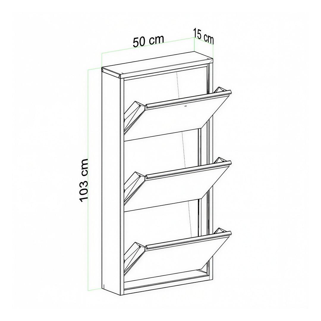 With a width of 50 cm, height of 103 cm, and depth of 15 cm, this shoe cabinet is the perfect size for any entryway or hallway. Its white color adds a touch of elegance to any room, while the centrally opening doors with magnetic holders make accessing your shoes a breeze.