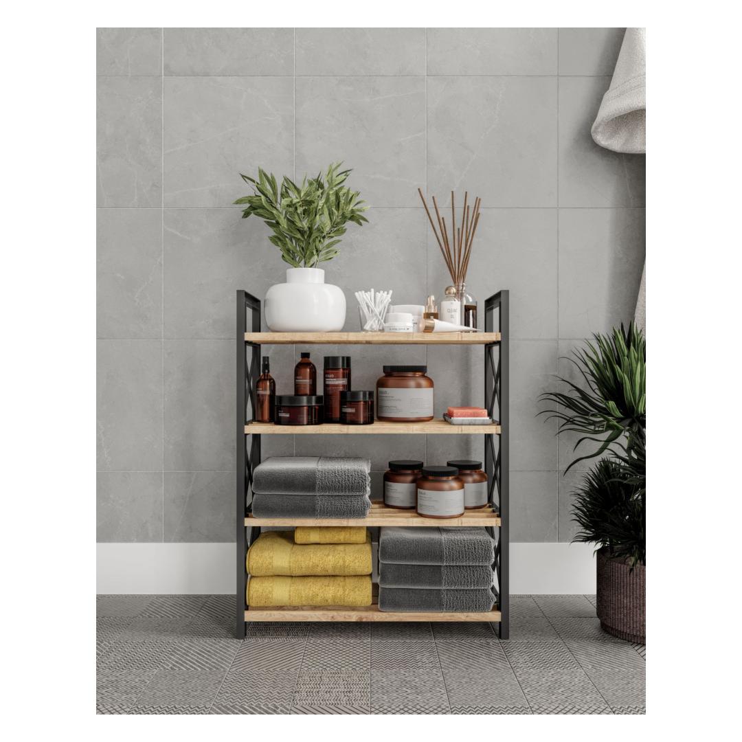 Crafted from high-quality PLASTİC WOOD, this shelf is built to last. Its sturdy construction ensures that it can hold all of your essentials without bowing or breaking. Plus, its modern design adds a touch of sophistication to any space.
