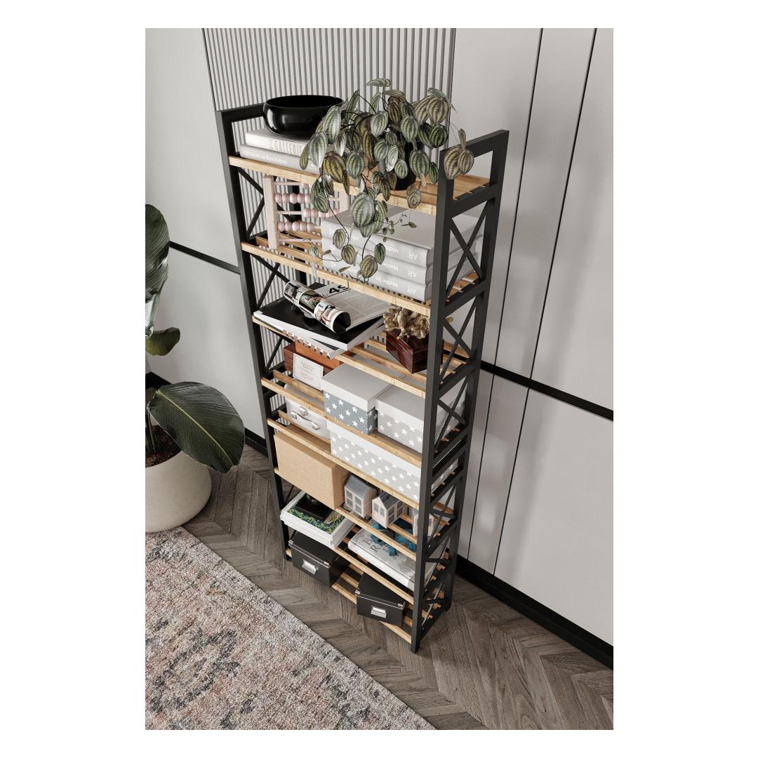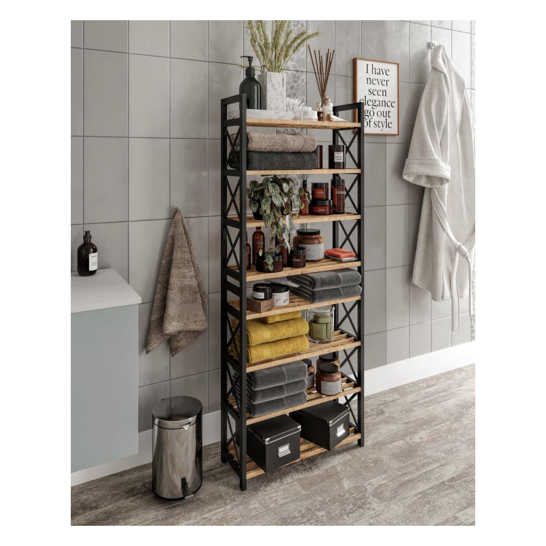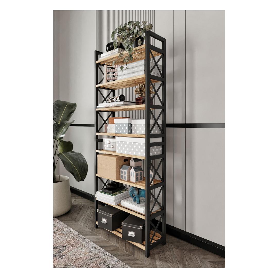 With its innovative design and industrial flair, this shelf will instantly elevate any room in your home. Whether you need extra storage in your living room, bedroom, or home office, this shelf is versatile enough to fit seamlessly into any space.