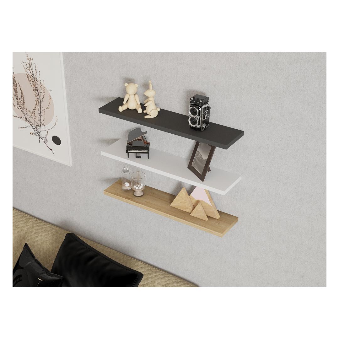 Featuring a combination of sapphire, anthracite, and white colors, this wall shelf adds a contemporary touch to your space. The Scandinavian-inspired design effortlessly blends with any interior style, making it a versatile addition to your home decor.