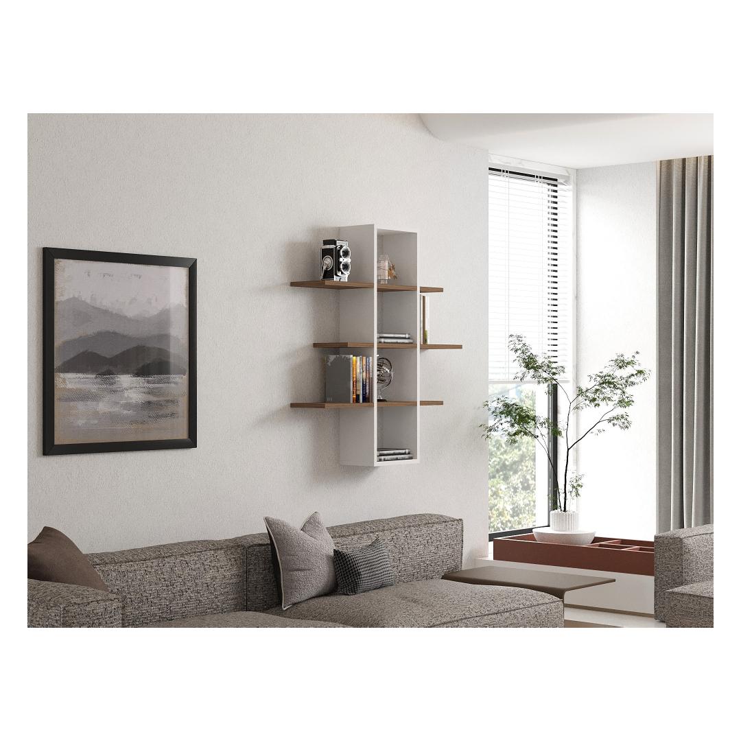 With its warm walnut and white color combination, this wall shelf effortlessly adds a touch of sophistication to any room. Whether you want to display your favorite books, showcase decorative items, or organize your essentials, this shelf provides the perfect platform to create a warm and inviting atmosphere in your home.
