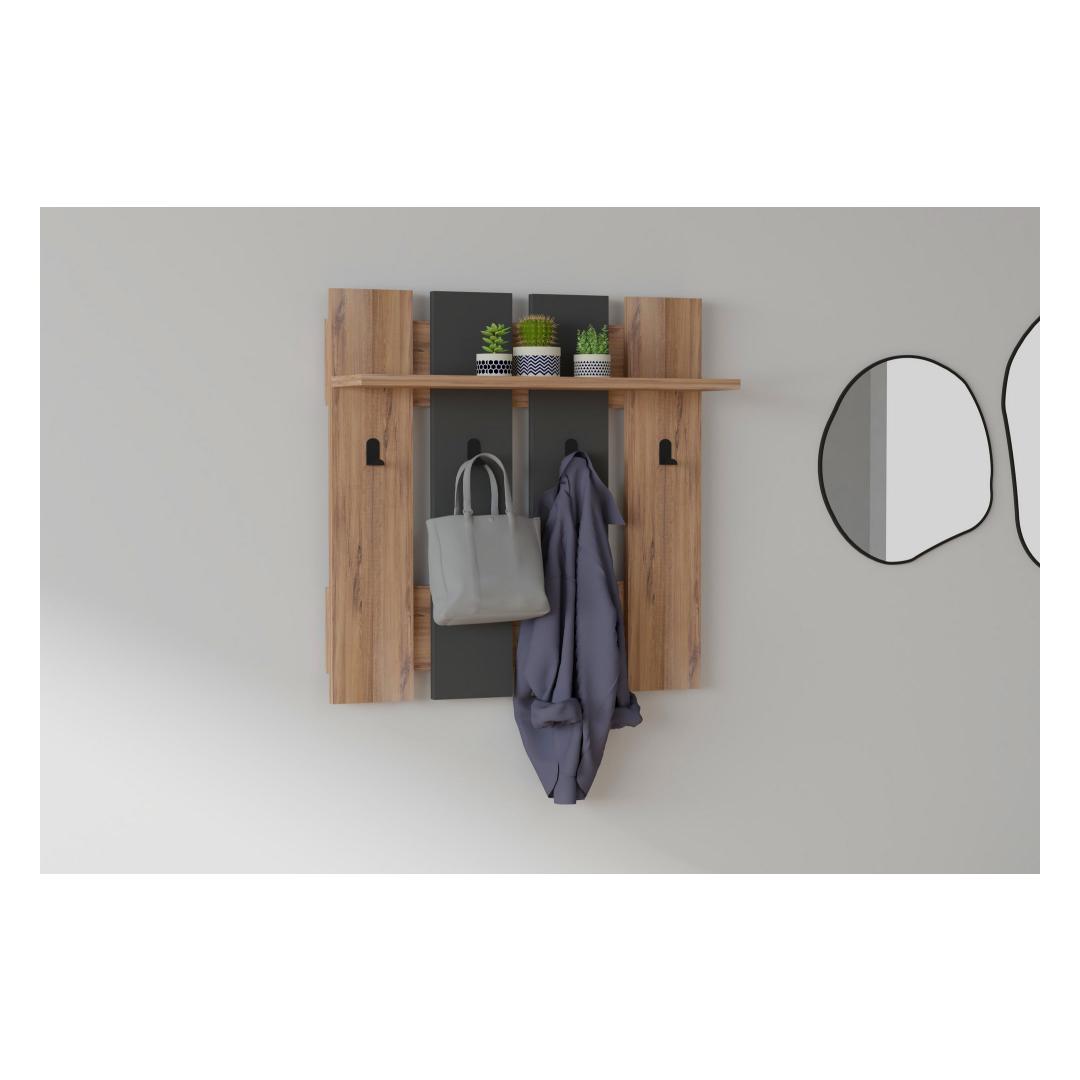 Crafted from 100% melamine coated particle board, our Wall Hook is not only visually appealing but also built to last. The walnut and anthracite colors blend seamlessly together, adding a touch of sophistication to any room. Say goodbye to flimsy hooks that break easily – our Wall Hook is designed to withstand daily use and keep your belongings secure.
