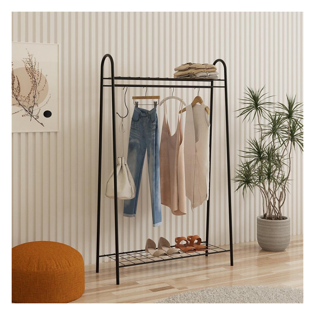 The coat hanger features a sturdy metal frame with a thickness of 7 mm, ensuring durability and stability for all your coats, jackets, and accessories. The metal legs provide additional support, while the sleek black color adds a touch of sophistication to your space.
