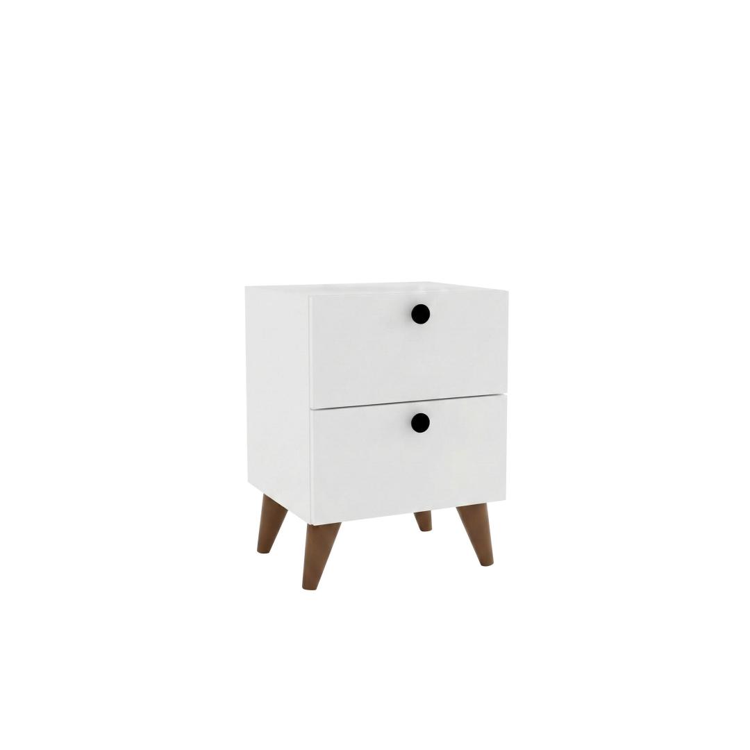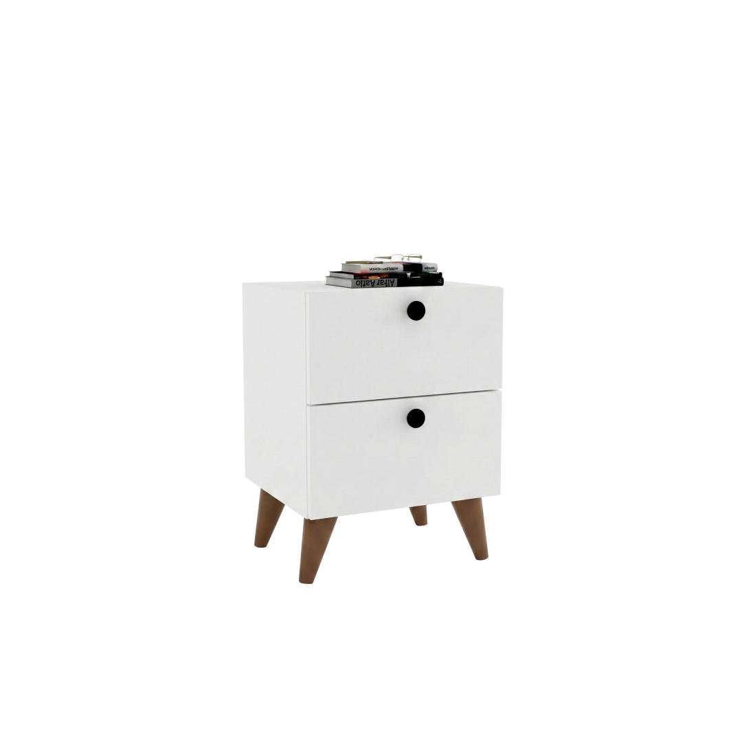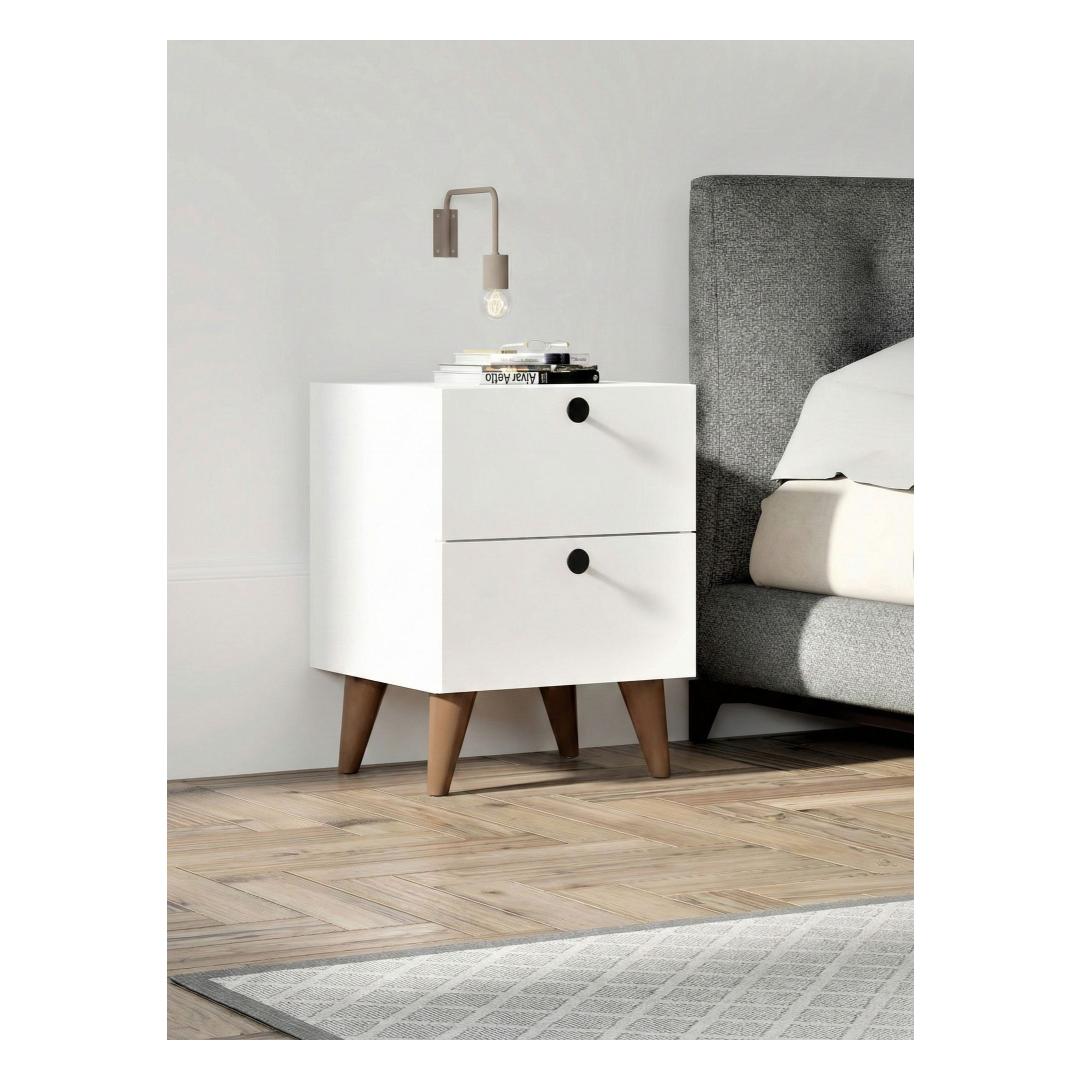 With its clean lines and minimalist design, our Scandinavian Nightstand effortlessly blends in with any bedroom style. The sleek white color adds a sense of calm and serenity, creating a peaceful atmosphere for a restful night's sleep.